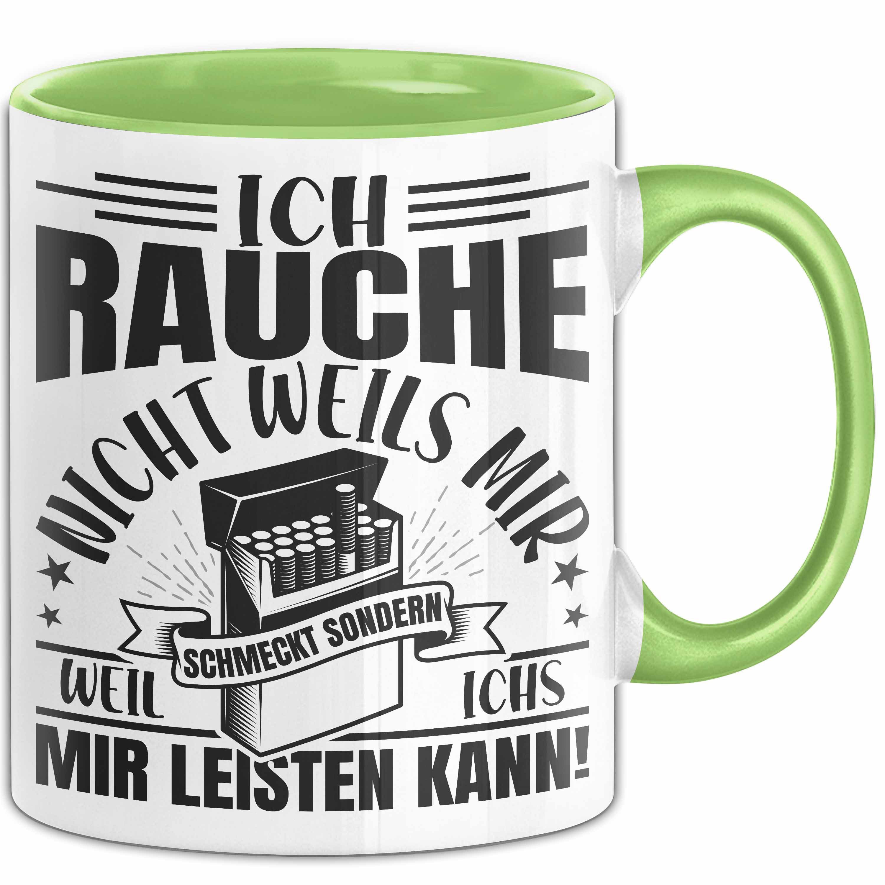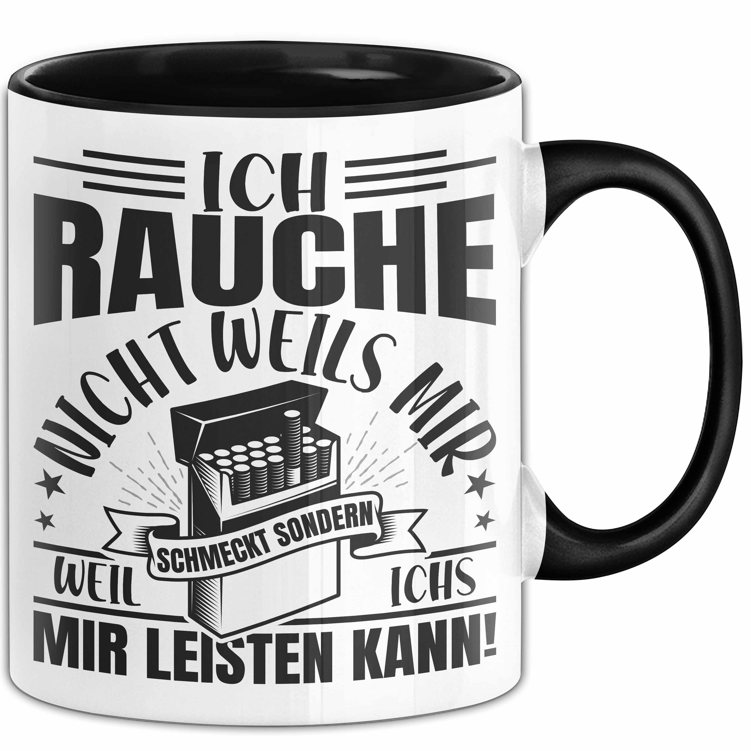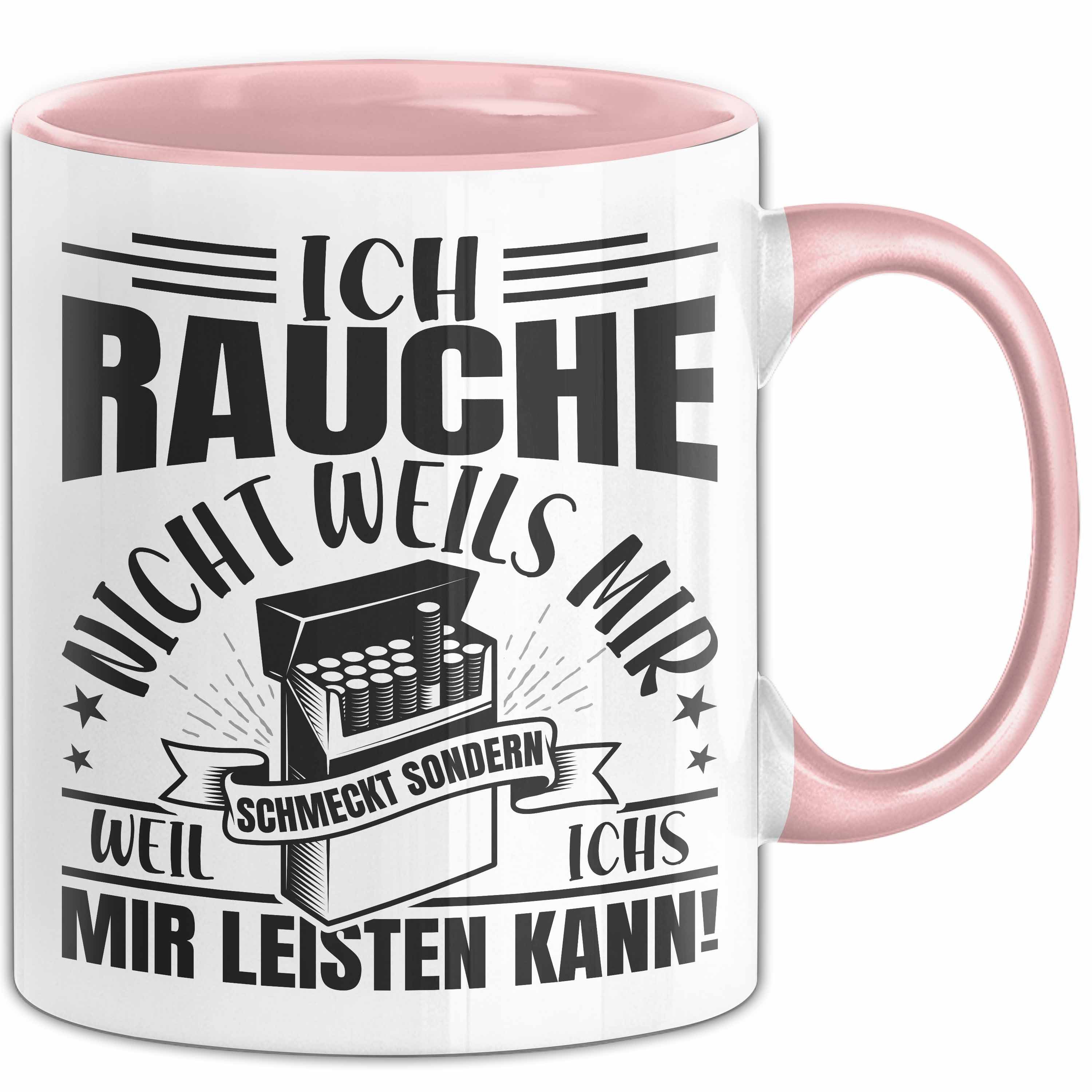 Eine Tasse für Raucher mit dem humorvollen Spruch "Ich rauche nicht, weil es mir schmeckt, sondern weil ich es mir leisten kann". Eine tolle Geschenkidee, die mit einem Augenzwinke
