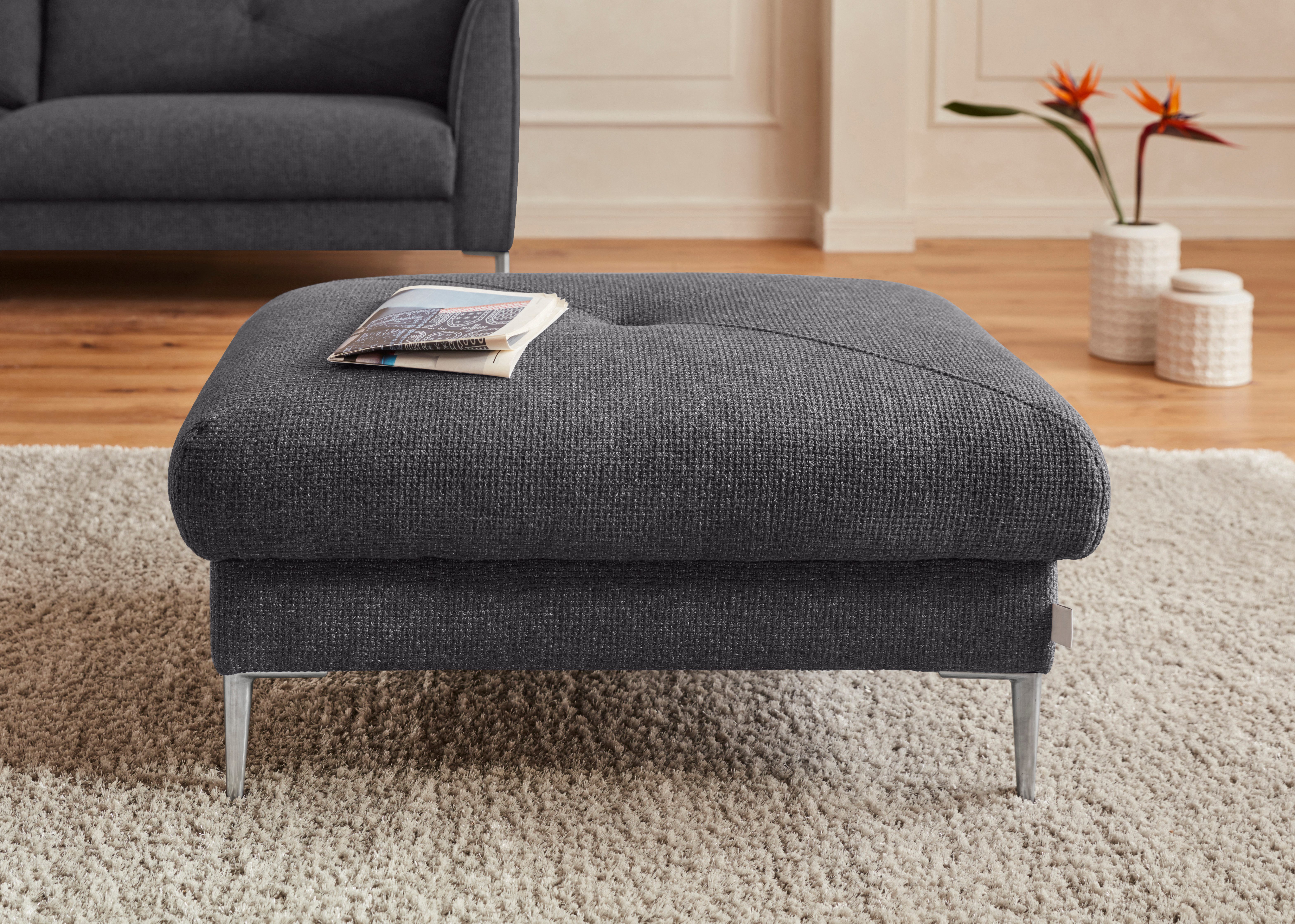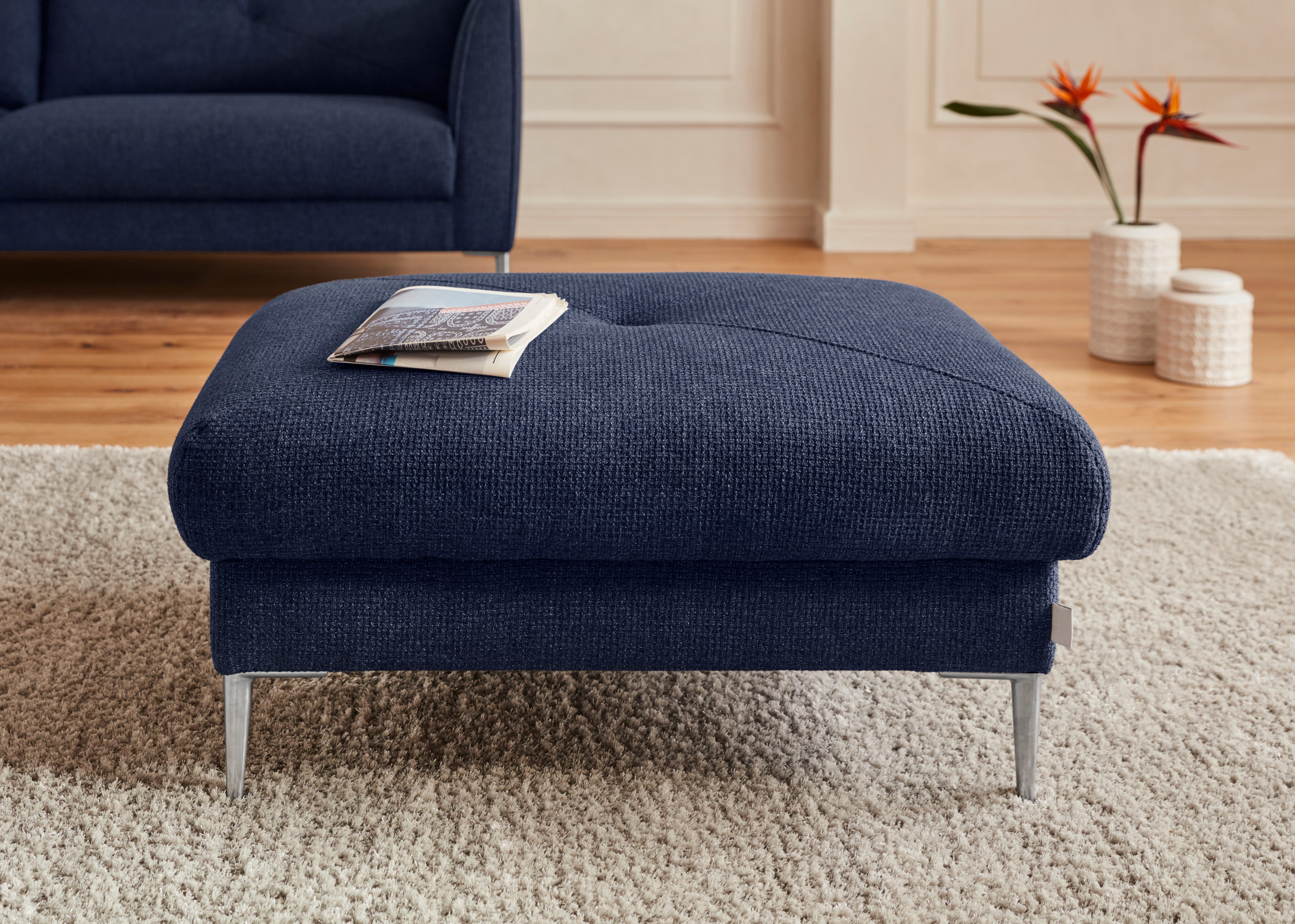 Wissenswertes | Elegante Kreuznaht auf der Sitzfläche, softer Sitzkomfort, in verschiedenen Farben und Stoffen erhältlich, extra hohe Füße aus Metall |