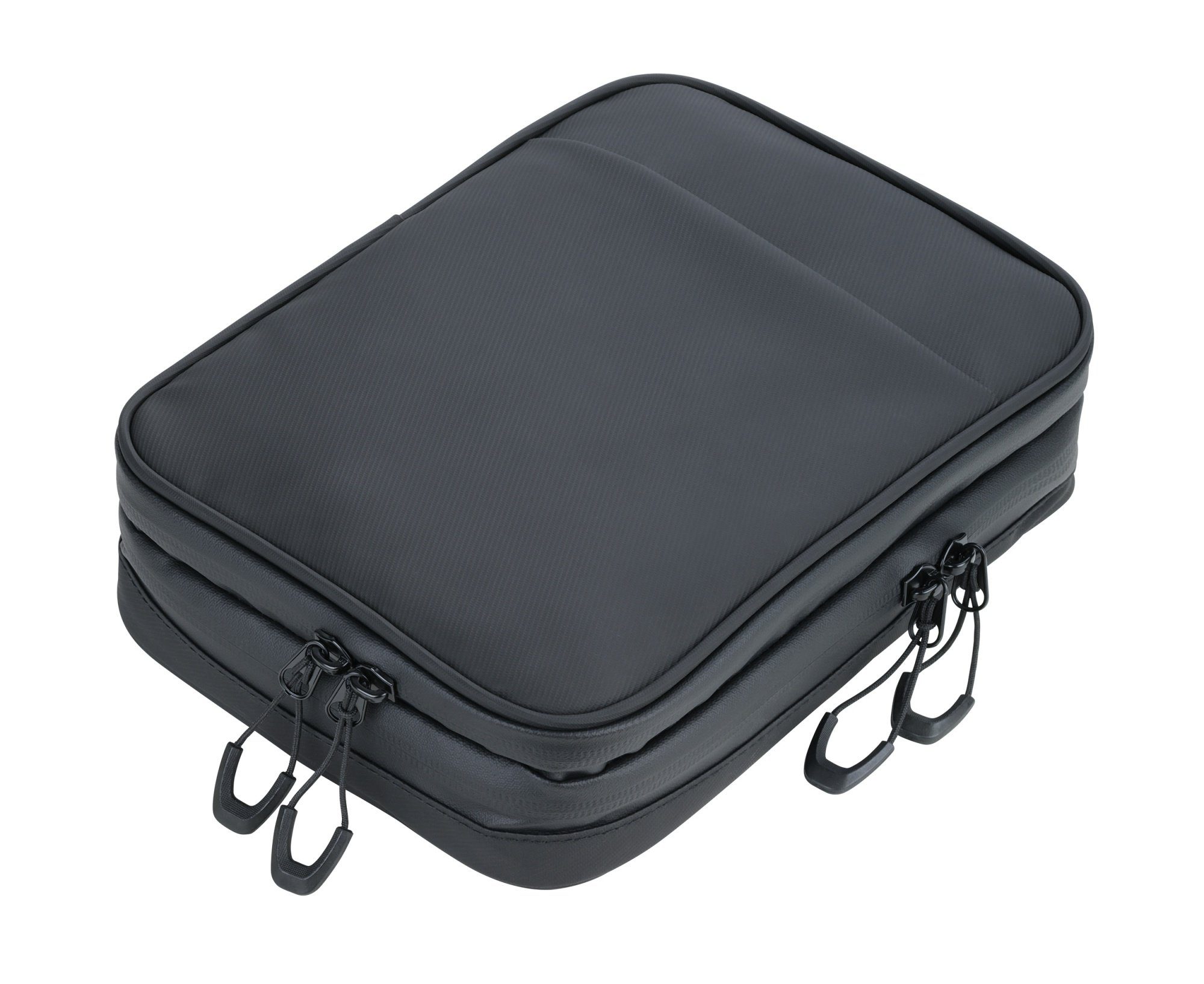 Kabeltasche mit 2 Reißverschlussfächern, 2 Innenfächer mit Netztaschen und Elastikbändern für Zubehör (Every Day Carry), Stiftschlaufe, 1 Außenfach, 100% Polyester, Schlaufe zur Befestigung am Trolley, Tarpaulin (Plane), schwarz.