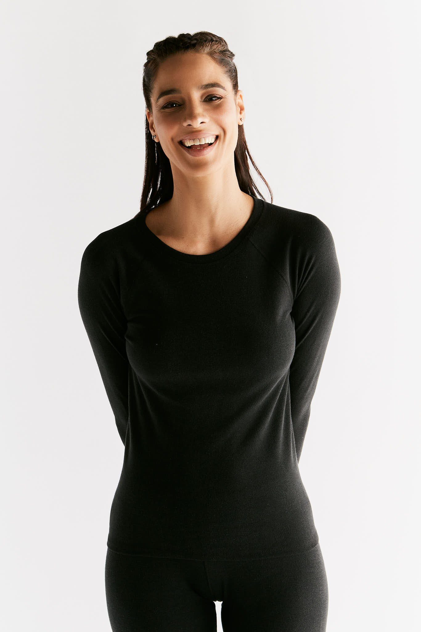 - Damen-Thermo-Longsleeve in „Black“ - Enger Schnitt, umweltschonender und wärmeregulierender Stoff - 62% recycelter Polyester, 33% Tencel, 5% Elasthan