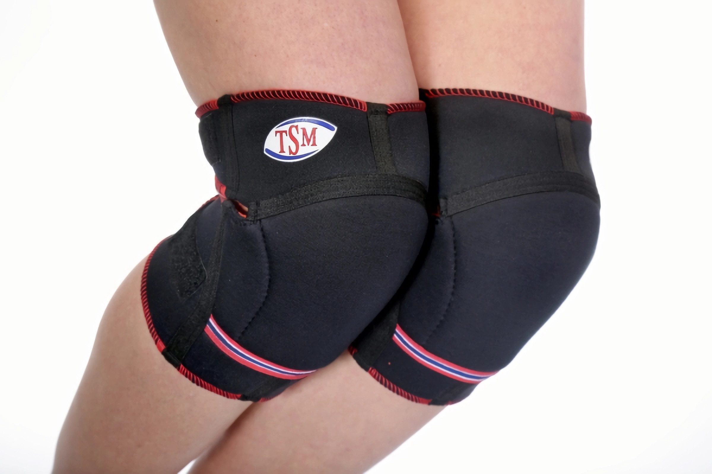 Optimaler Sitz der TSM Knieschützer Kids aktivFixieren Sie die Bandage an den Klettverschlüssen so, daß sie nicht einschnürt. Dabei liegt das TSM-Logo immer beim jeweiligen Knie außen.