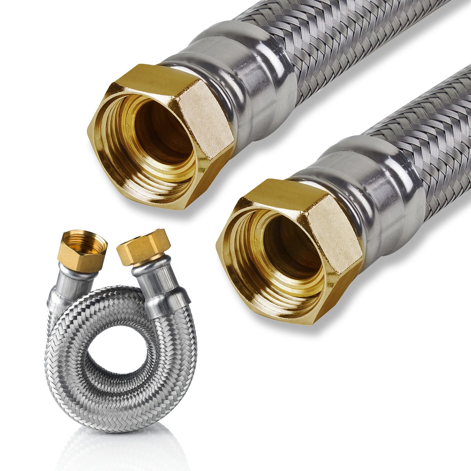 Die Trinkwasser Panzerschläuche aus Edelstahl DN13 haben auf der Außenseite ein Geflecht aus rostfreiem Stahl AISI 304, auf der Innenseite befindet sich ein HDPE Schlauch. Das Material der Anschlussteile (Innen- oder Außengewinde) sind aus Messing gefertigt. Der Außenmantel ist extrem flexibel und knickfest für engste Einbausituationen geeignet. So gewährleisten sie einen optimalen, freien Durchfluss. Diese Anschlussschläuche wurden speziell für den Einsatz bei Heißwasserspeichern, Wasserenthärtern, Pumpen, Wasserzählern, Heizungsanlagen und Wasserfilterungsanlagen entwickelt. Der antibakterielle HDPE-Rohrmantel erfüllt die Vorgaben nach DVGW, W270 und KTW-A. Die Metall-Zubehörteile erfüllen die zulässigen Höchstwerte der DWD für Verunreinigungen durch Metalle im Kontakt mit Trinkwasser. Damit ist die Trinkwasserqualität bis zur Verwendung am Wasserhahn garantiert.