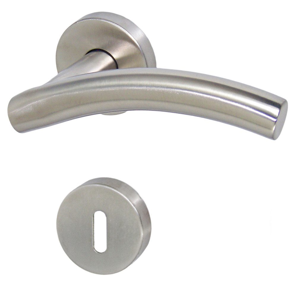Edelstahl V2A Türbeschlag " 1476 Iseo BB " Innentür-Rosetten-Garnitur, aus Rostfreiem Edelstahl, mit Stütznocken und Rückholfeder zur Schlossentlastung !