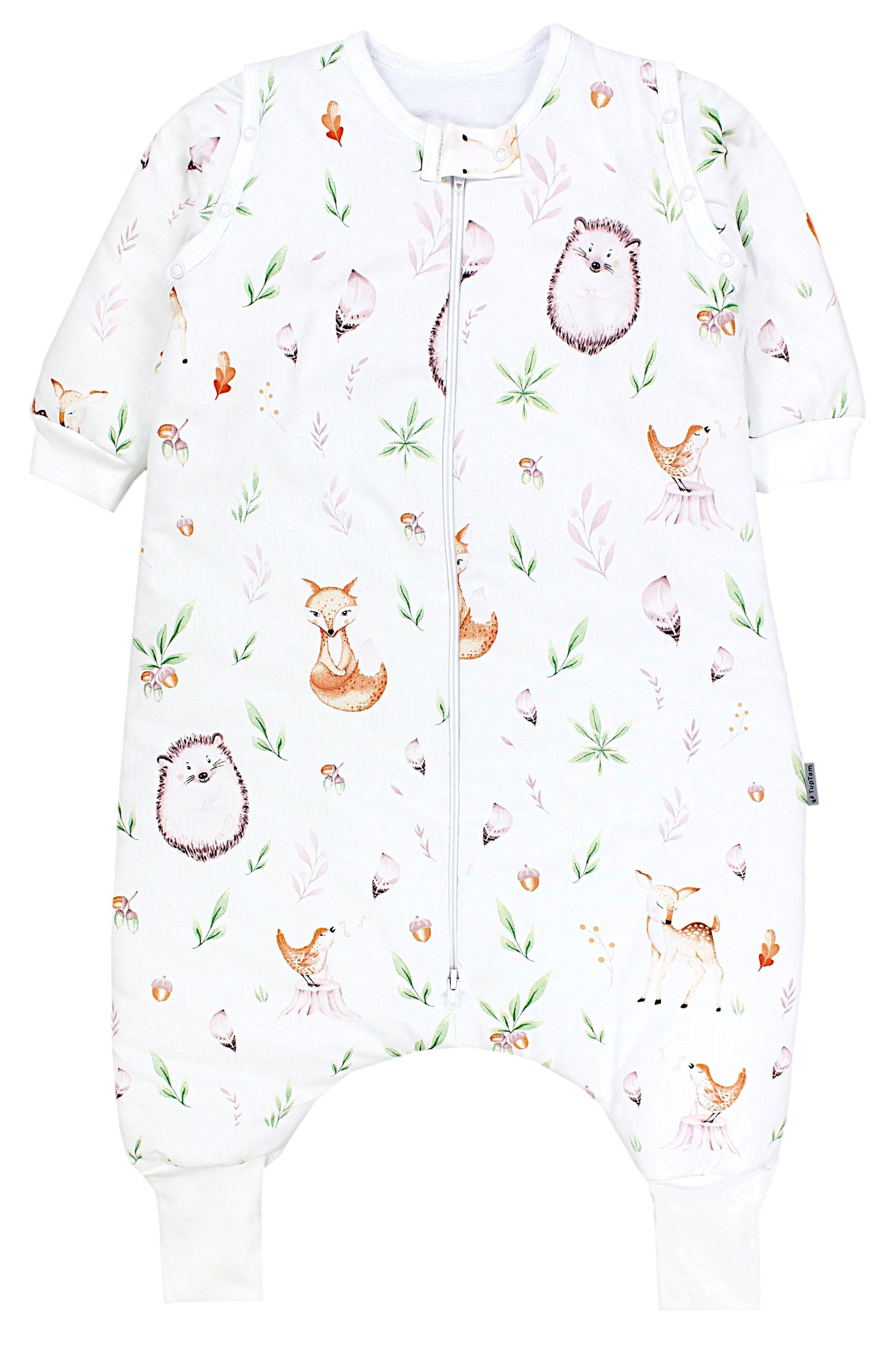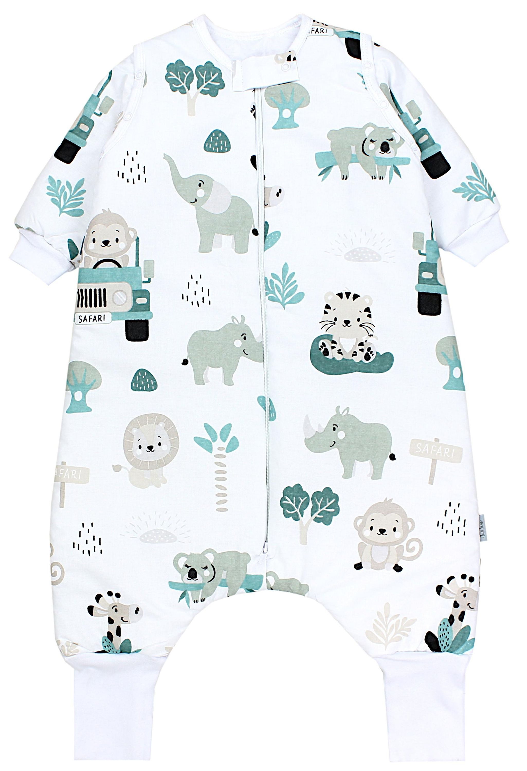 Wir ziehen darunter einen Body, dünne Hose plus dicke Socken, da der Umschlägen für die Füße sehr dünn ist.