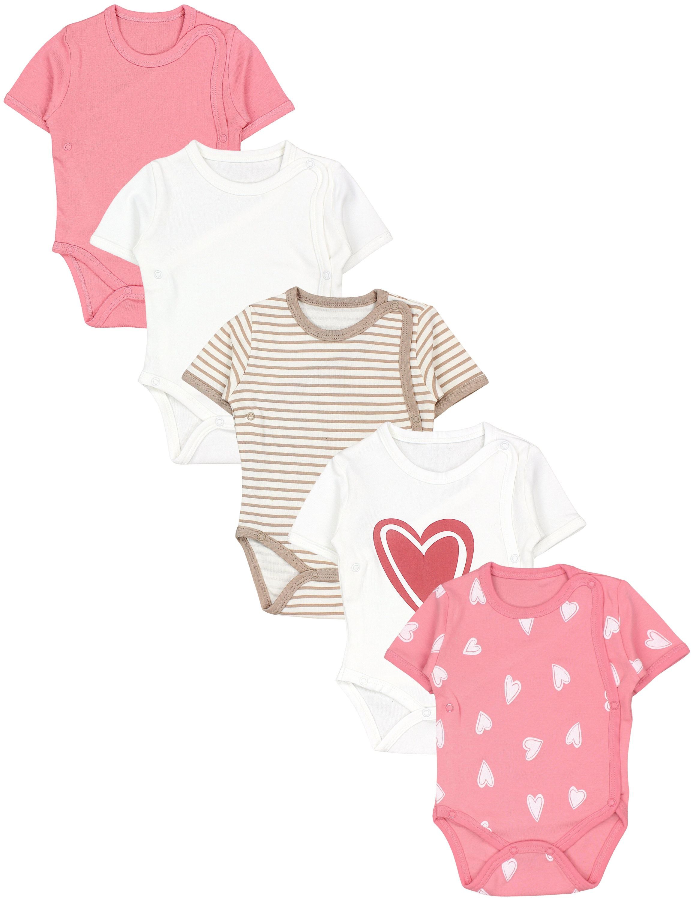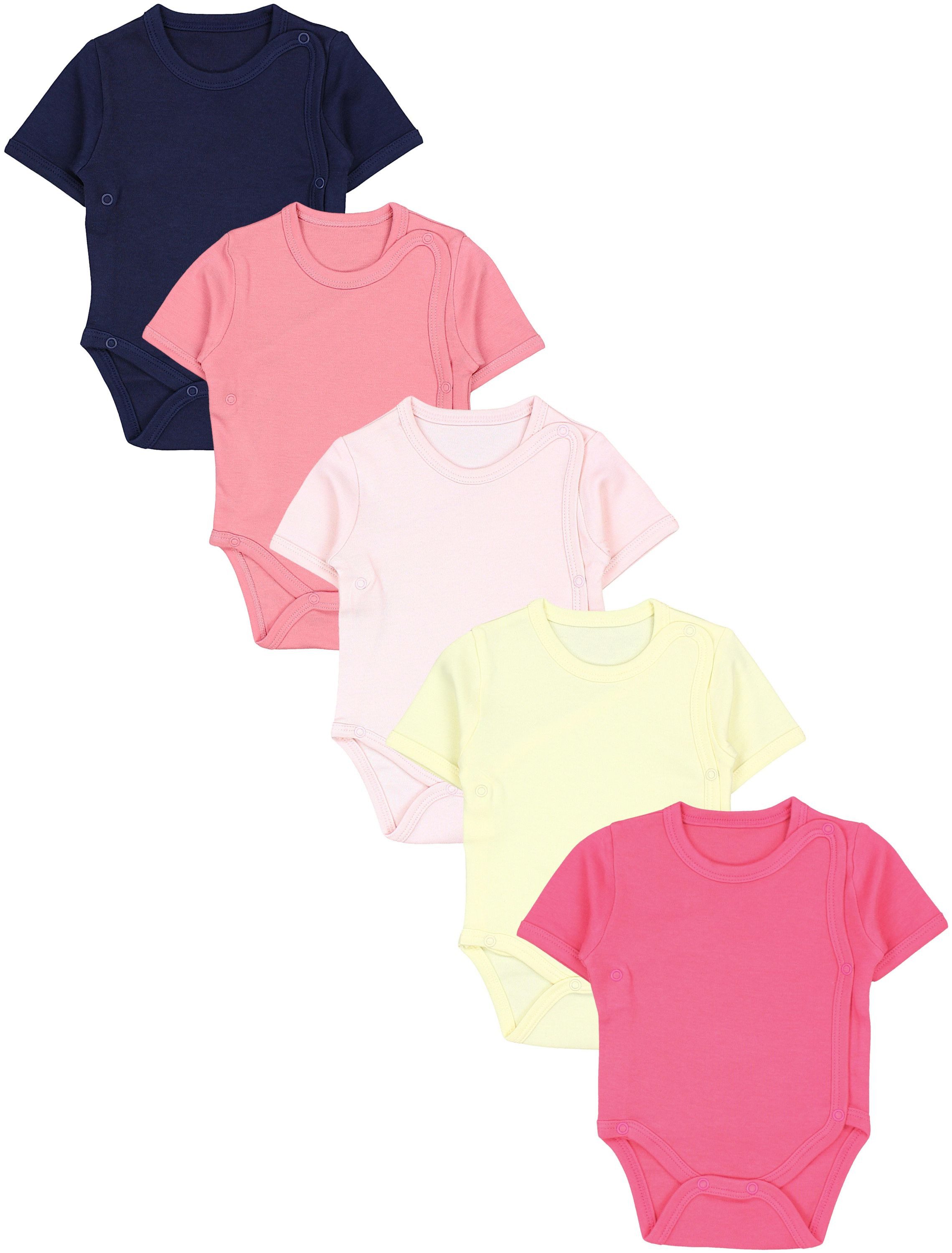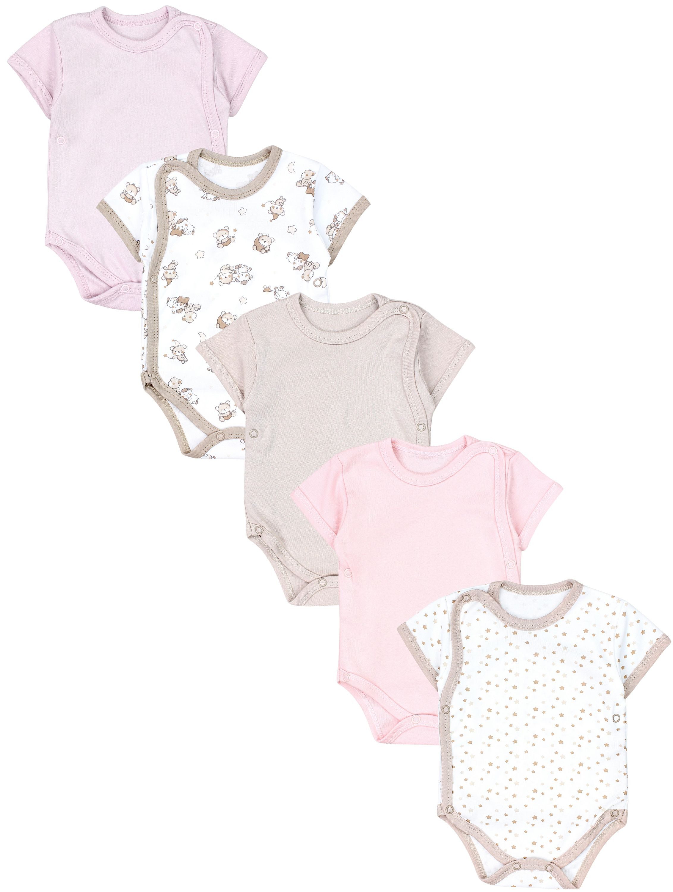 Diese Baby Mädchen Wickelbodies mit kurzen Ärmeln aus der aktuellen Kollektion von TupTam sehen nicht nur schick aus, sondern sind auch sehr praktisch. Aus diesem Grund dürfen sie in keinem Wäscheschrank eines Babys fehlen. Lieferbar in einem preisgünstigen 5er Set. Die anschmiegsame, hautsympathische Baumwolle fühlt sich sehr angenehm auf der Haut an und ist besonders bequem zu tragen. Diese süßen Einteiler eignen sich hervorragend für die ersten Lebensmonate des Babys, da die ganze Vorderseite mit praktischen Druckknöpfen versehen ist, was das An- und Ausziehen viel einfacher macht. Nur das beste für Ihren Schatz! Hergestellt in der EU mit viel Liebe zum Detail.