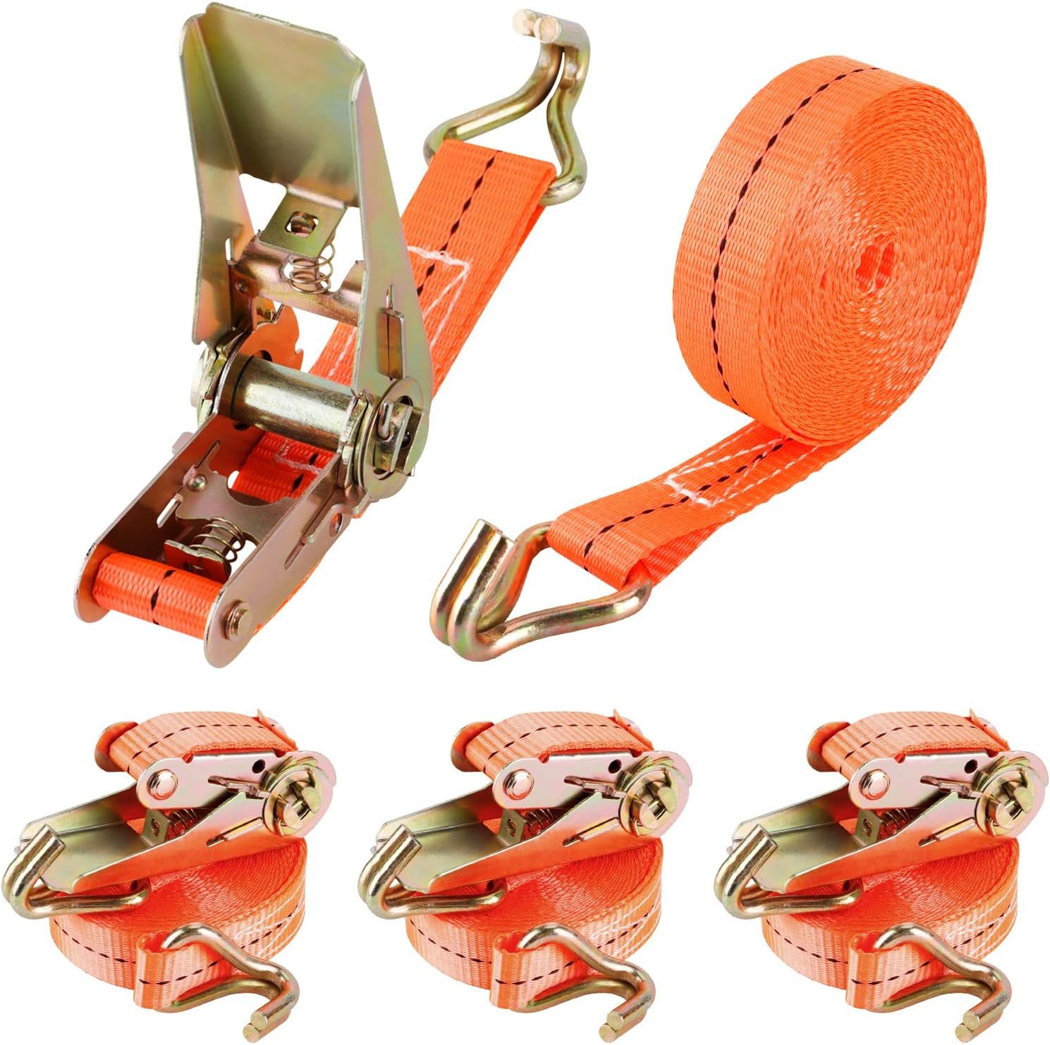 Die Gurte bestehen aus einem optimalen Gewebe und sind mit verstärkten Verschlüssen ausgestattet, um Ihre Ladung sicher zu halten. Die leuchtende orange Farbe ist UV-beständig und sorgt dafür, dass die Gurte auch unter Sonneneinstrahlung ihre Qualität behalten. Die doppelten S-Haken aus Stahl garantieren einen sicheren Halt in jedem Laderaum und ermöglichen eine einfache Befestigung an LKW-Ladungsschienen, Dachträgern und verschiedenen Verbindungsteilen wie D-Ringen.