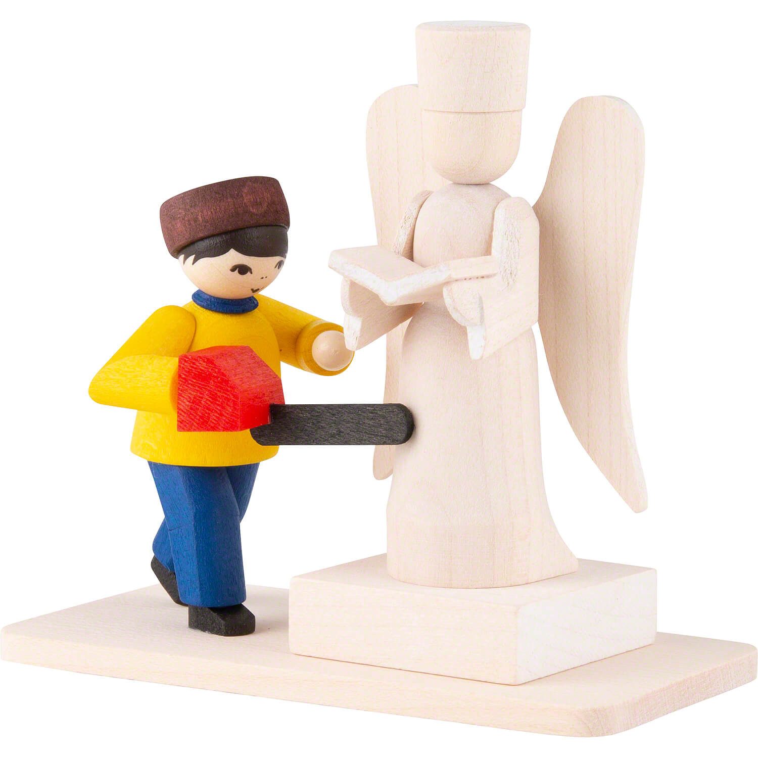 Dekofigur Winterkinder Junge mit Schneeskulptur gebeizt (7cm) von ULMIK