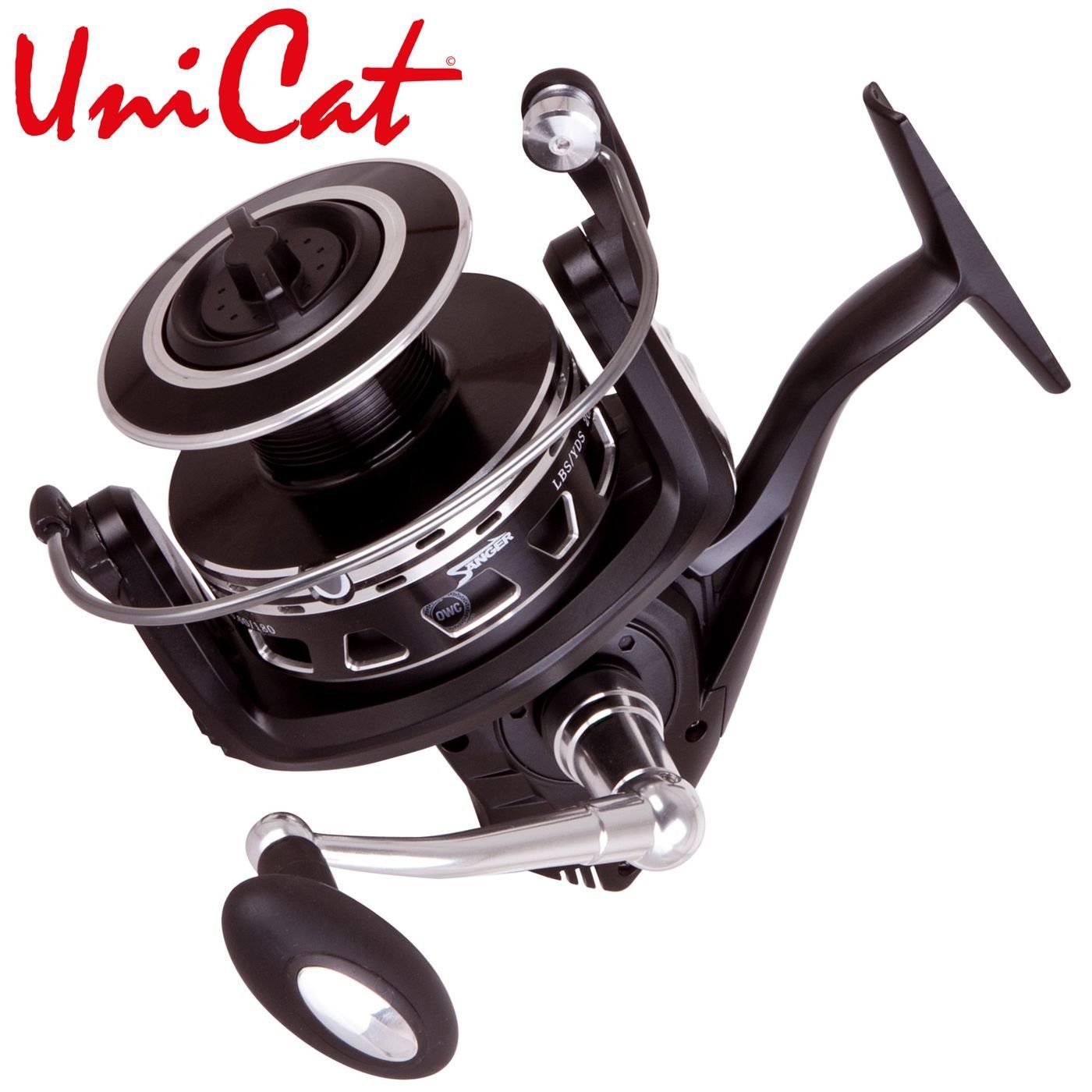 Uni Cat Destroyer II Wallerrolle - Stationärrolle - Die Angelrolle von Uni Cat ist eine tolle Welsrolle, die sich für unterschiedliche Angelmethoden beim Wallerangeln einsetzen lässt. Das Abspannen an Bäumen, Ästen oder anderen Hindernissen meistert die Wallerrolle ebenso, wie das Wallerfischen mit der Bojenmontage. Zudem kann die Stationärrolle auch sehr gut zum Welsangeln mit der Unterwasserposenmontage verwendet werden. Das gut funktionierende Frontbremssystem mit drei großen Carbonbremsscheiben arbeitet sehr gut im Drill mit einem Großwels und es gibt ohne zu rucken Schnur frei, wenn der Wels zu einer Flucht ansetzt. Zudem besitzt die Angelrolle fünf Edelstahlkugellager, eine 6mm Achse sowie insgesamt eine robuste Bauweise, so dass sie den Anforderungen beim passiven Welsangeln gewachsen ist.