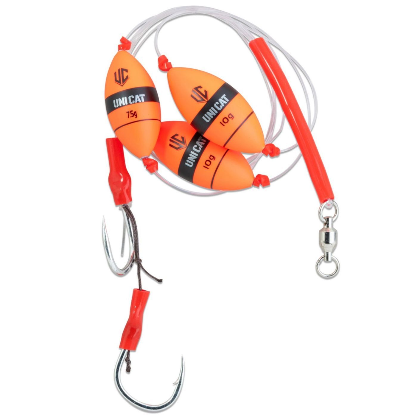 UNI CAT Weightless Smelly Gripper Rig - Das Rig von Uni Cat ist eine gut ausbalancierte Haarmontage, bestehend aus zwei hintereinander liegenden Einzelhaken für Köderfisch. Sie ermöglicht eine schwerelose Präsentation dank der 3 kleinen U-Posen. Sie fängt mehr als fängt mehr als konventionelle Rigs, da es sich um eine sehr natürliche Präsentation handelt. Vor allem bei Ködern die mit Lockstoff besprüht werden ist das Rig sehr gut geeignet.