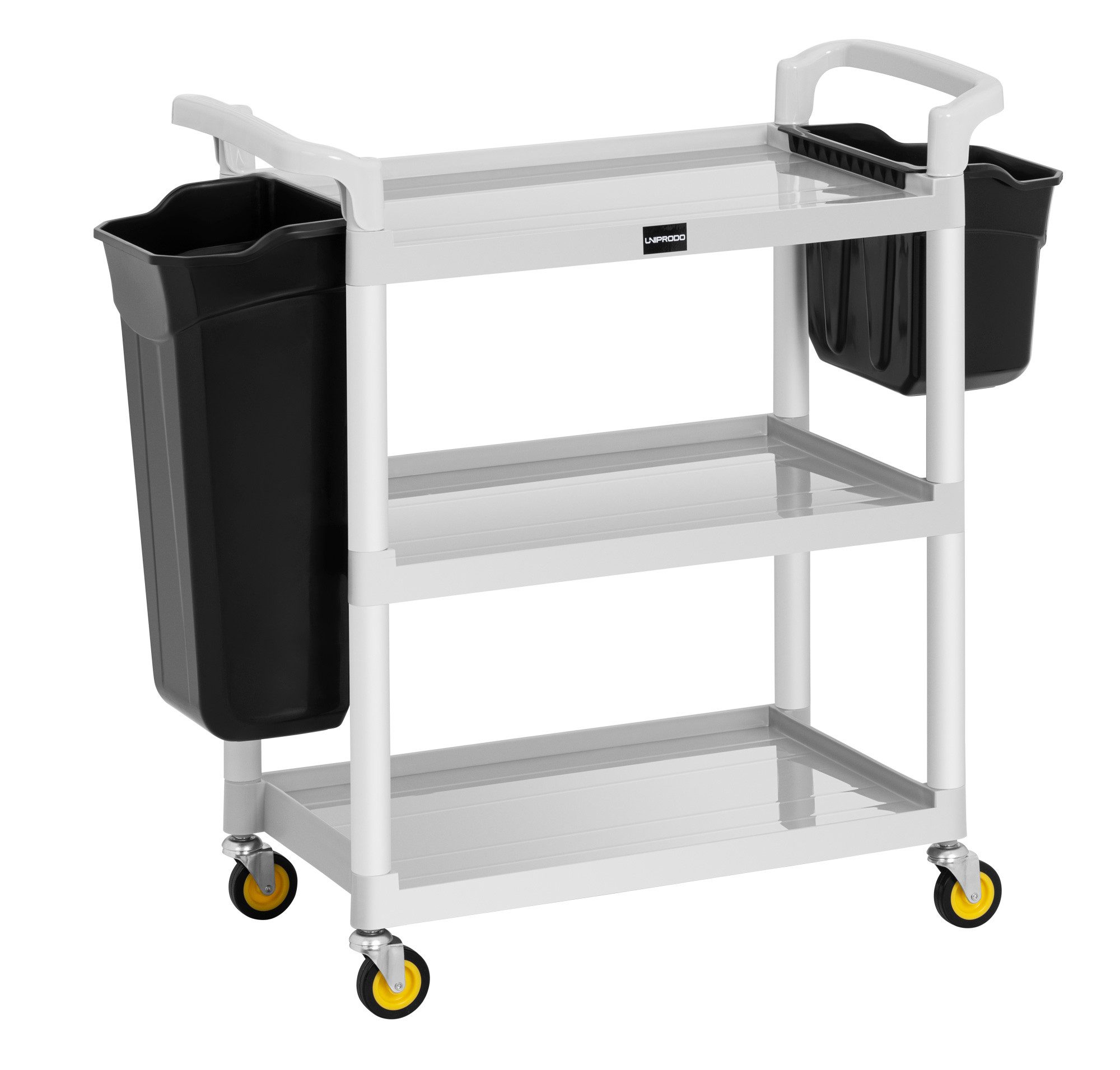 Saubere Räume überzeugen nicht nur im Hotel, auch in Restaurants, Büroräumen und Verkaufsflächen ist Sauberkeit das erste Aushängeschild gegenüber allen Gästen. Damit diese schnell und effektiv gereinigt werden können, hält der Servicewagen Hotel UNICLEAN 150 drei Ablagen für Reinigungsmittel und zwei Behälter bereit. Darüber hinaus kann der Wagen aber auch zum Transport von Getränkekisten, Lebensmittelvorräten, Wäsche oder anderen Dingen verwendet werden.