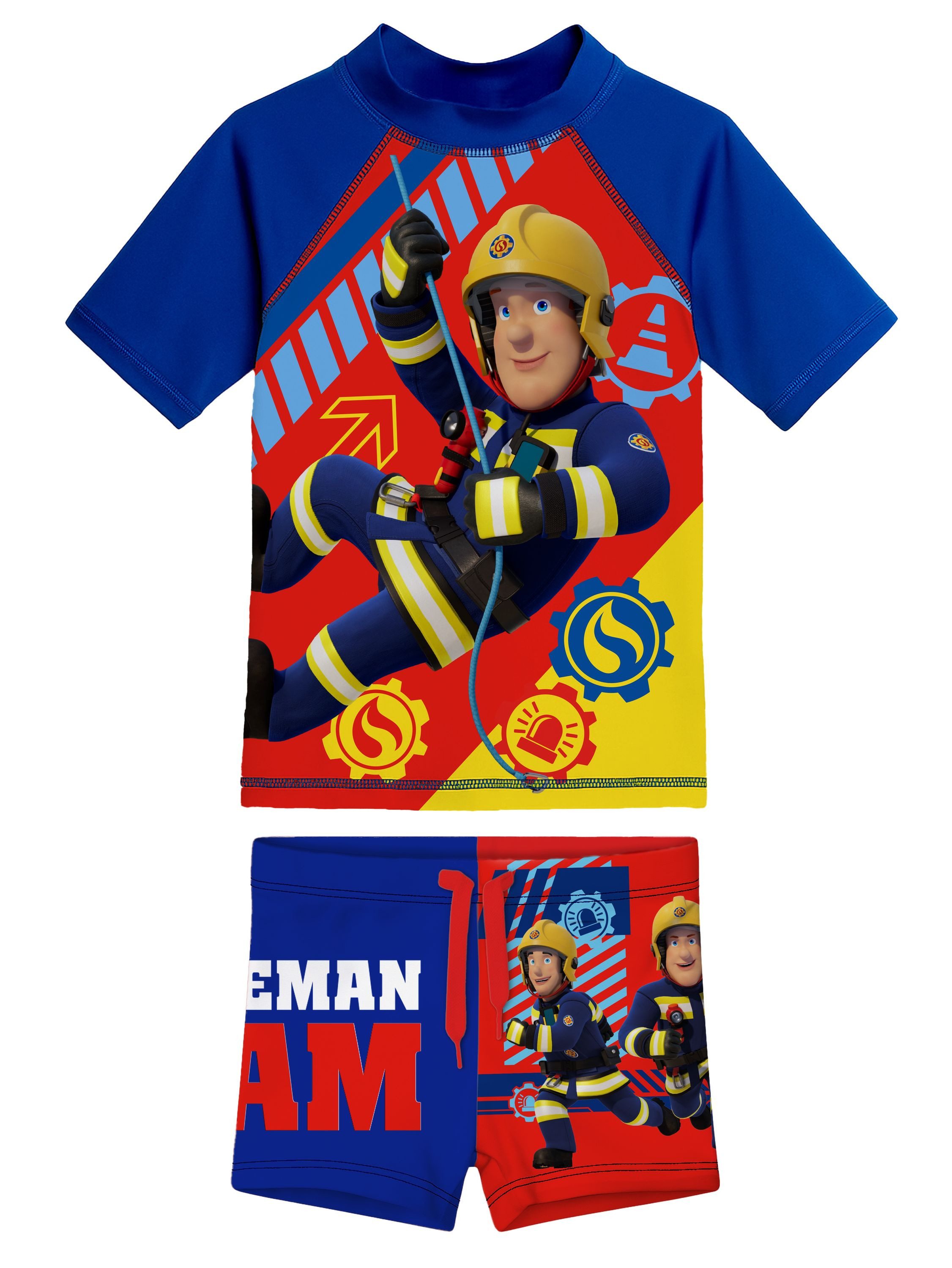 Feuerwehrmann Sam Schwimmset UV-Schutz 50 für Jungen - Kinder Badeanzug Badeset Shirt und Hose Zweiteiler Blau