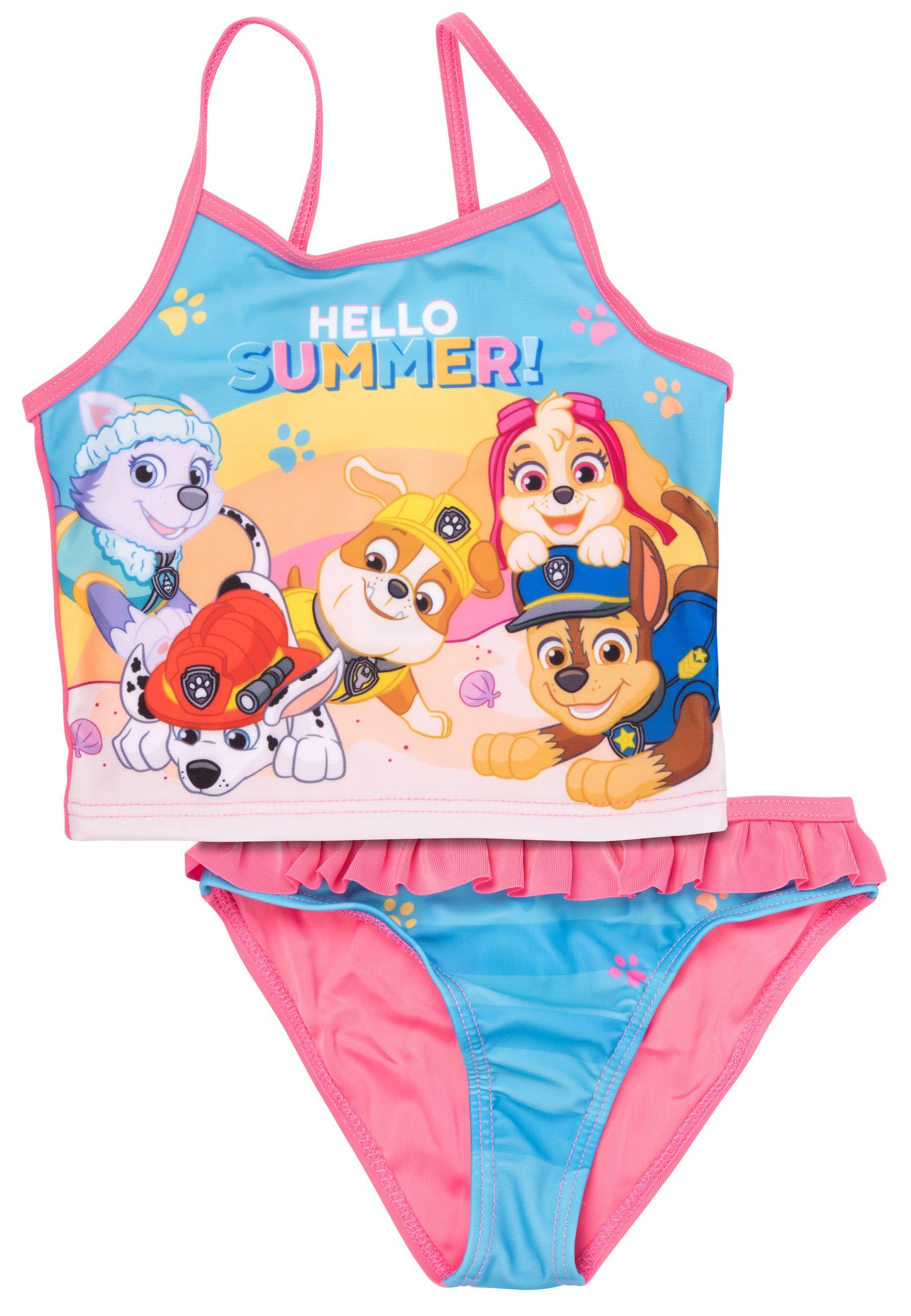 Paw Patrol Tankini Badeanzug mit Rüschen für Mädchen - Hello Summer Zweiteiler Kinder Schwimmanzug