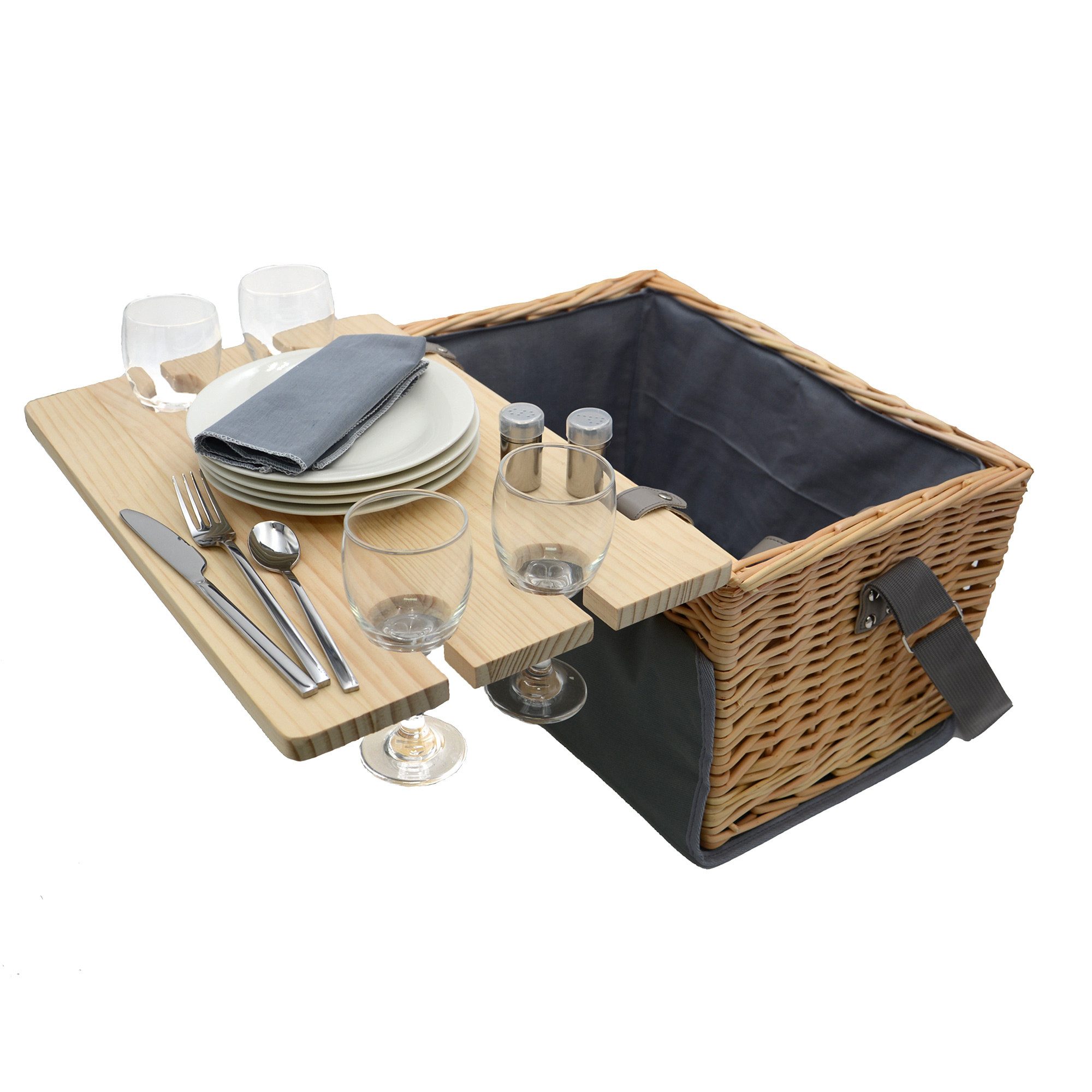 Picknickkorb für 4 Personen inklusive Geschirr-Set, Picknickdecke, Kühltasche, Getränkehalter und Serviertisch