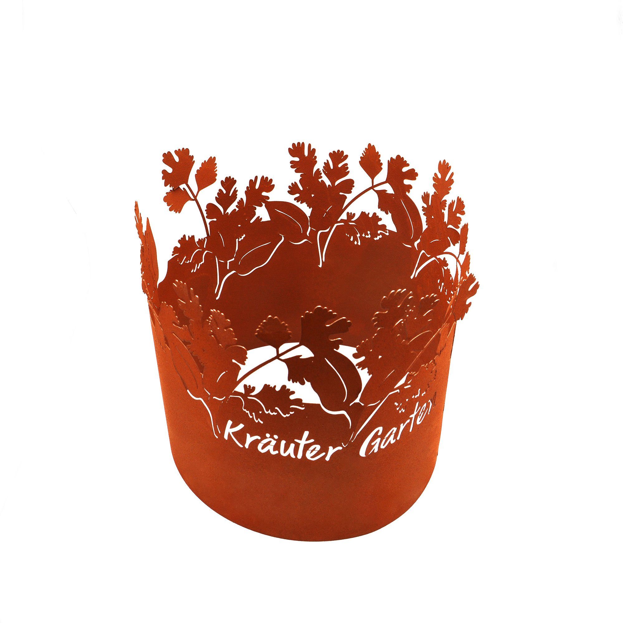 Beeteinfassung Rasenkante Rostoptik Kräutergarten mit Schriftzug "Kräutergarten" 28 ⌀ cm Höhe 24 cm - Flexibel gestaltbar!