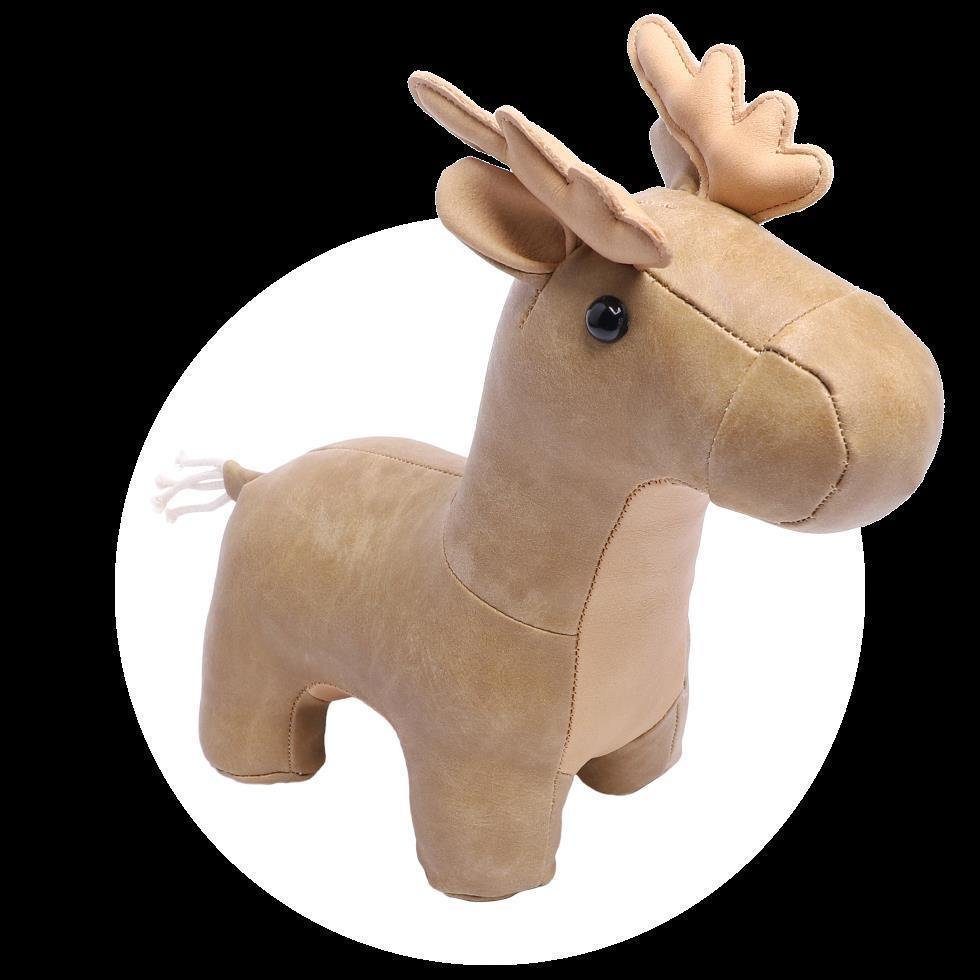 Neben der Verwendung als außergewöhnliche Dekoration im Regal oder neben der Couch kann das Ledertier je nach Розмір auch als Buchstütze, Türstopper oder Sitzgelegenheit eingesetzt werden. Das Rentier besteht aus Kunstleder und ist im Inneren mit Polyesterfasern und Eisenspänen gefüllt und hat dadurch einen stabilen und sicheren Stand.