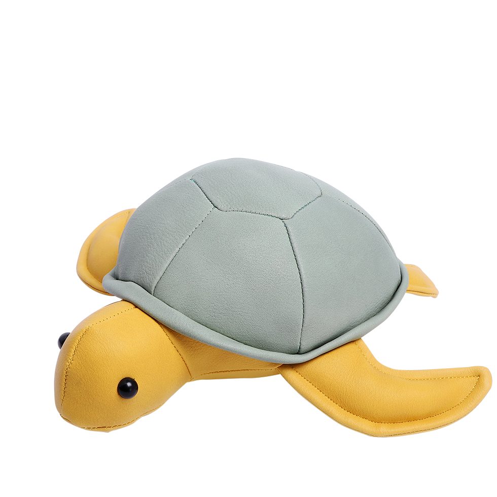 Neben der Verwendung als außergewöhnliche Dekoration im Regal oder neben der Couch kann das Ledertier je nach Розмір auch als Buchstütze, Türstopper oder Sitzgelegenheit eingesetzt werden. Die Schildkröte besteht aus Kunstleder und ist im Inneren mit Polyesterfasern und Eisenspänen gefüllt und hat dadurch einen stabilen und sicheren Stand.
