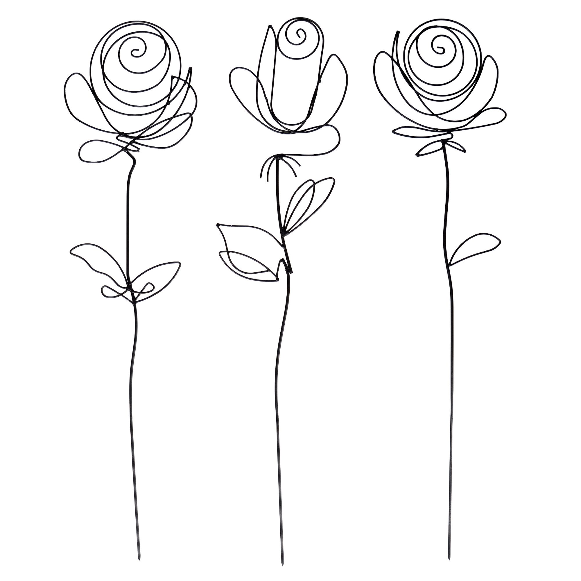 Mit dem UNUS® Metallstecker-Set „Rosen“ holen Sie sich eine elegante und langlebige Blütenpracht ins Haus. Die drei filigran gearbeiteten Metallrosen in Schwarz wirken modern und romantisch zugleich – ein stilvoller Blickfang für Pflanzenarrangements oder als dekoratives Einzelstück.