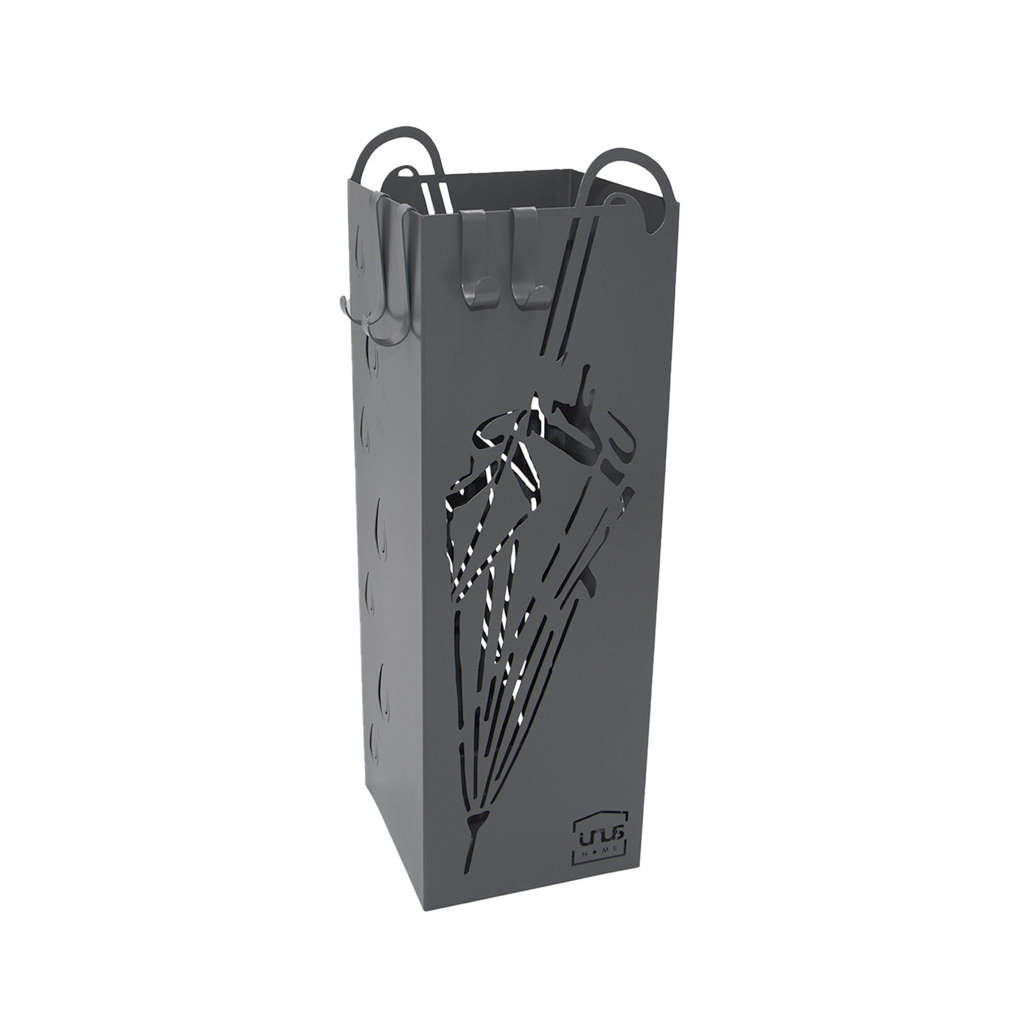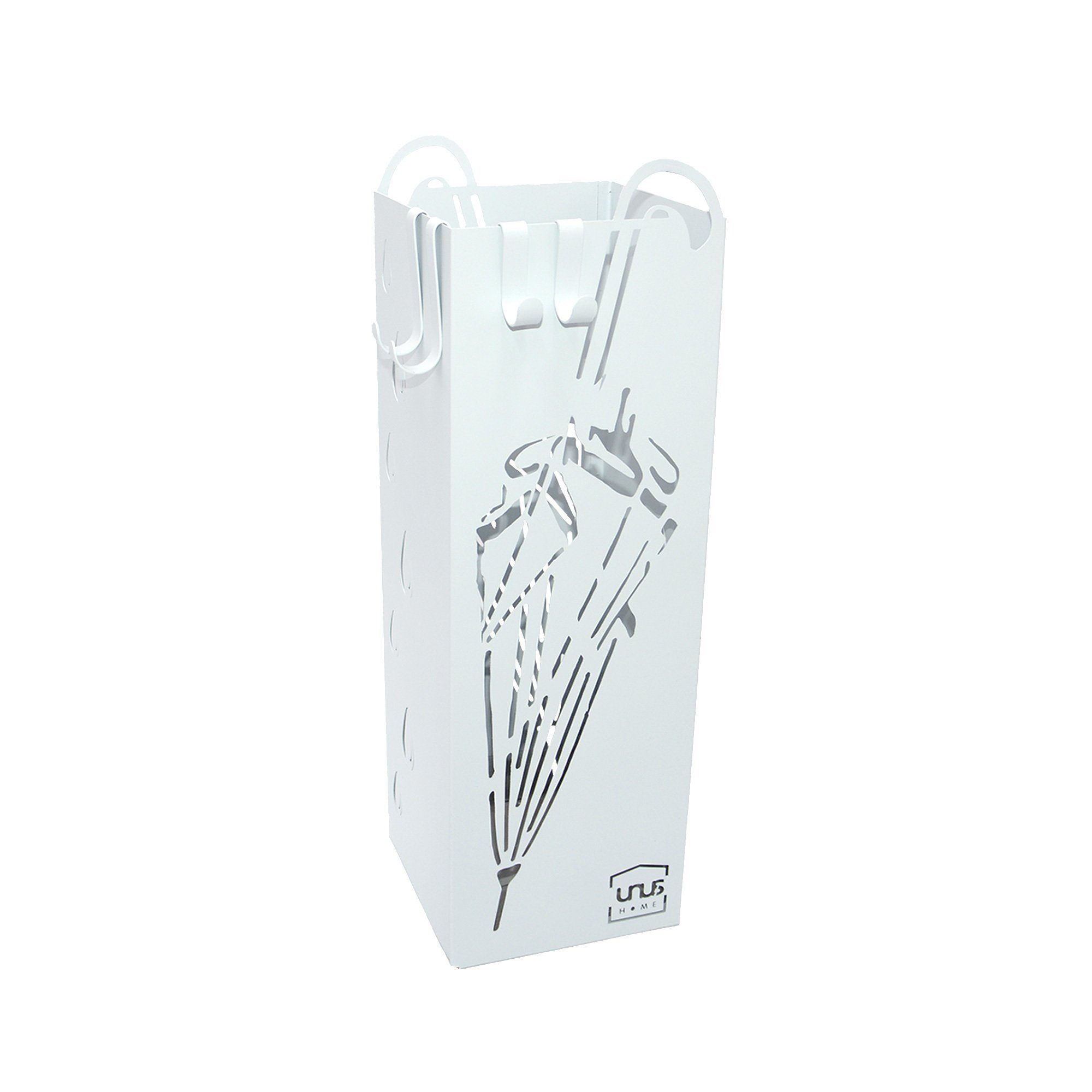 Der Ständer ist in drei Farben erhältlich: Elegantes Grau, strahlendes Weiß und klassisches Schwarz. Er bietet Platz für viele Regenschirme. Zusätzlich gibt es vier Haken zum Aufhängen von zusammengefalteten Schirmen oder kleinen Schirmen.