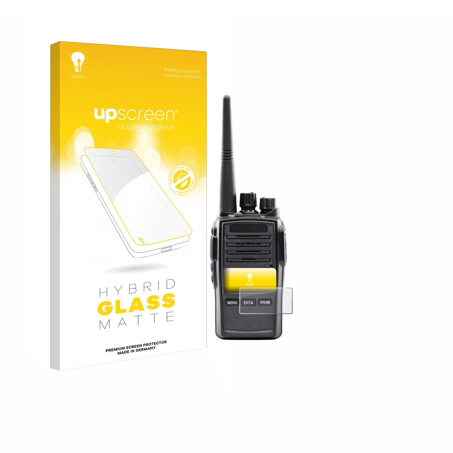 upscreen Hybrid Glass Matte Premium Schutzfolie bietet einen extra starken Displayschutz für Ihr Midland G18 Pro PMR. Es schützt optimal vor Kratzer und zeichnet sich durch seine besondere Leichtigkeit, Flexibilität und angenehme matte Entspiegelung aus.