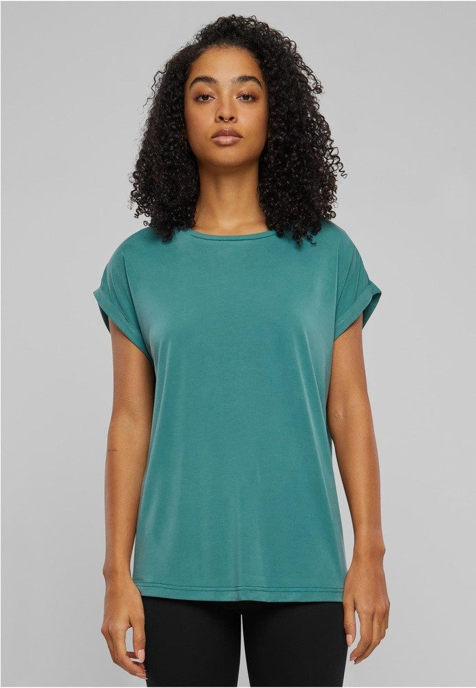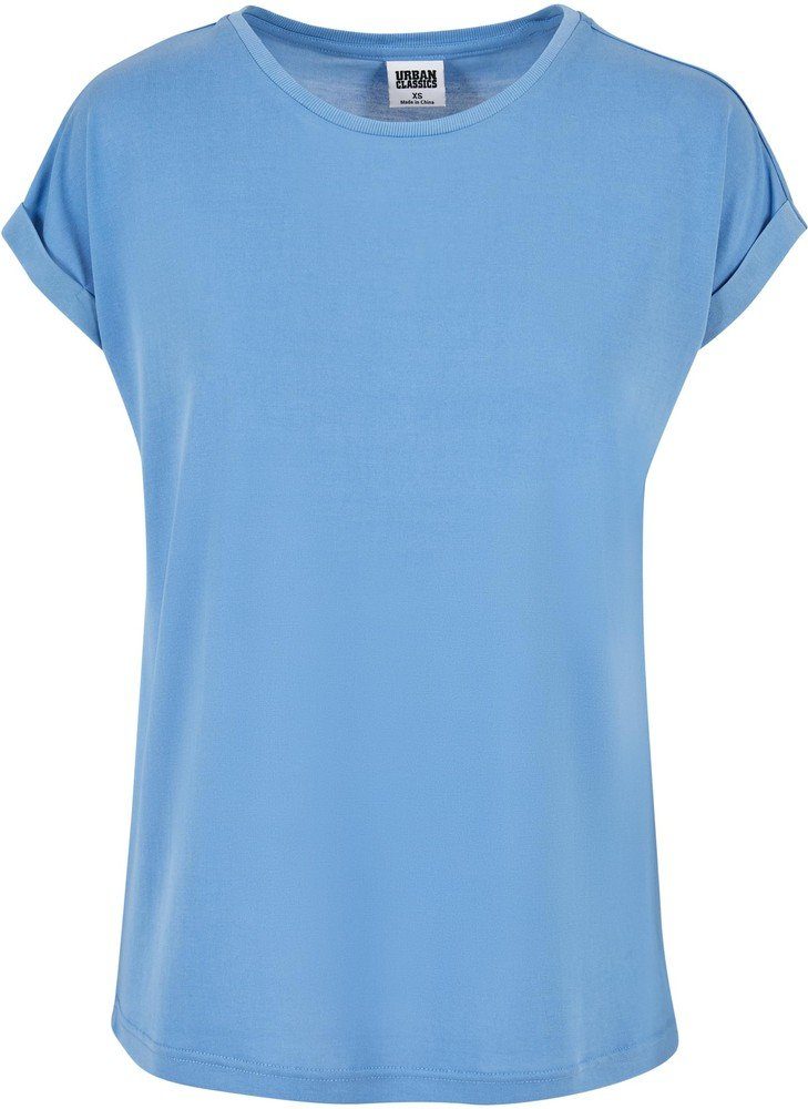 Dieses leicht zu kombinierende Damen Tee ist ein echtes Urban Classics Essential. Es ist lang geschnitten und zeigt einen Rundhalsausschnitt sowie angeschrägte, umgeschlagene Ärmel. Die Loose Fit Passform unterstreicht den unaufgeregten Style. Das Frauen T-Shirt besteht aus einem angenehmen Modal Jersey.