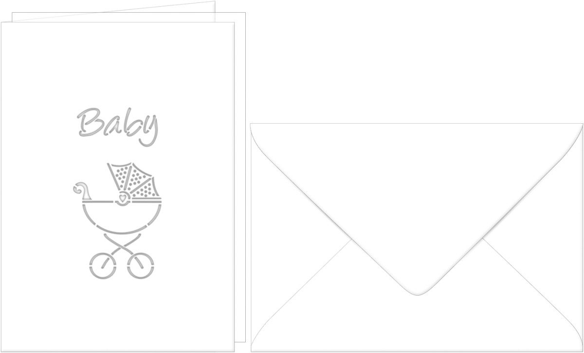 Designpapier Doppelkarte A6 gelasert + Kuvert VE=5 Sets Kinderwagen weiß