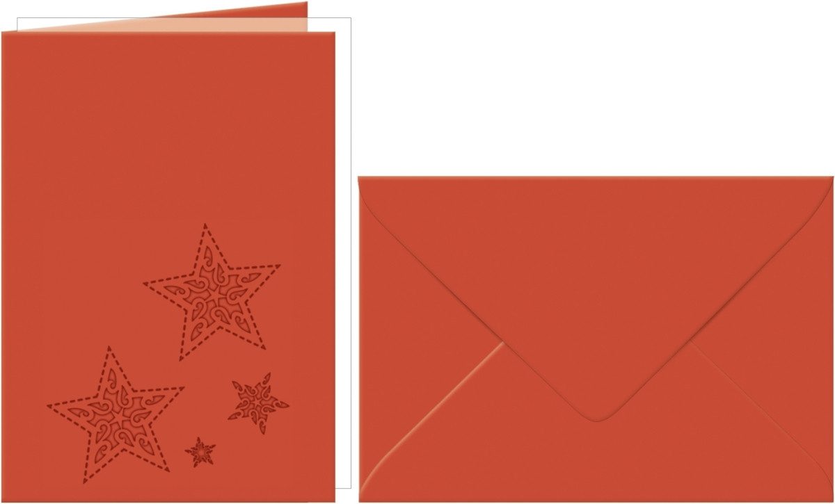 Designpapier Doppelkarte A6 gelasert + Kuvert VE=5 Sets Sterne rubinrot