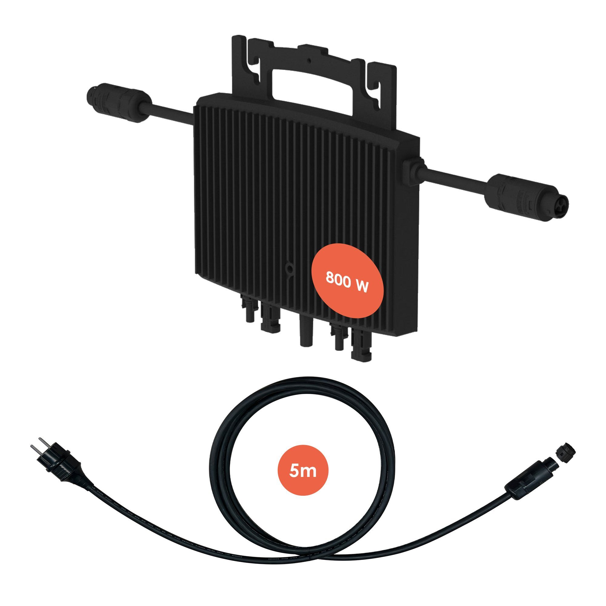 Lieferumfang Set 1: E-Star Energy HERF-800 Mikro-Wechselrichter | bis zu 2 PV-Module | 800 Watt | inkl. 5 m Anschlusskabel & Endkappe