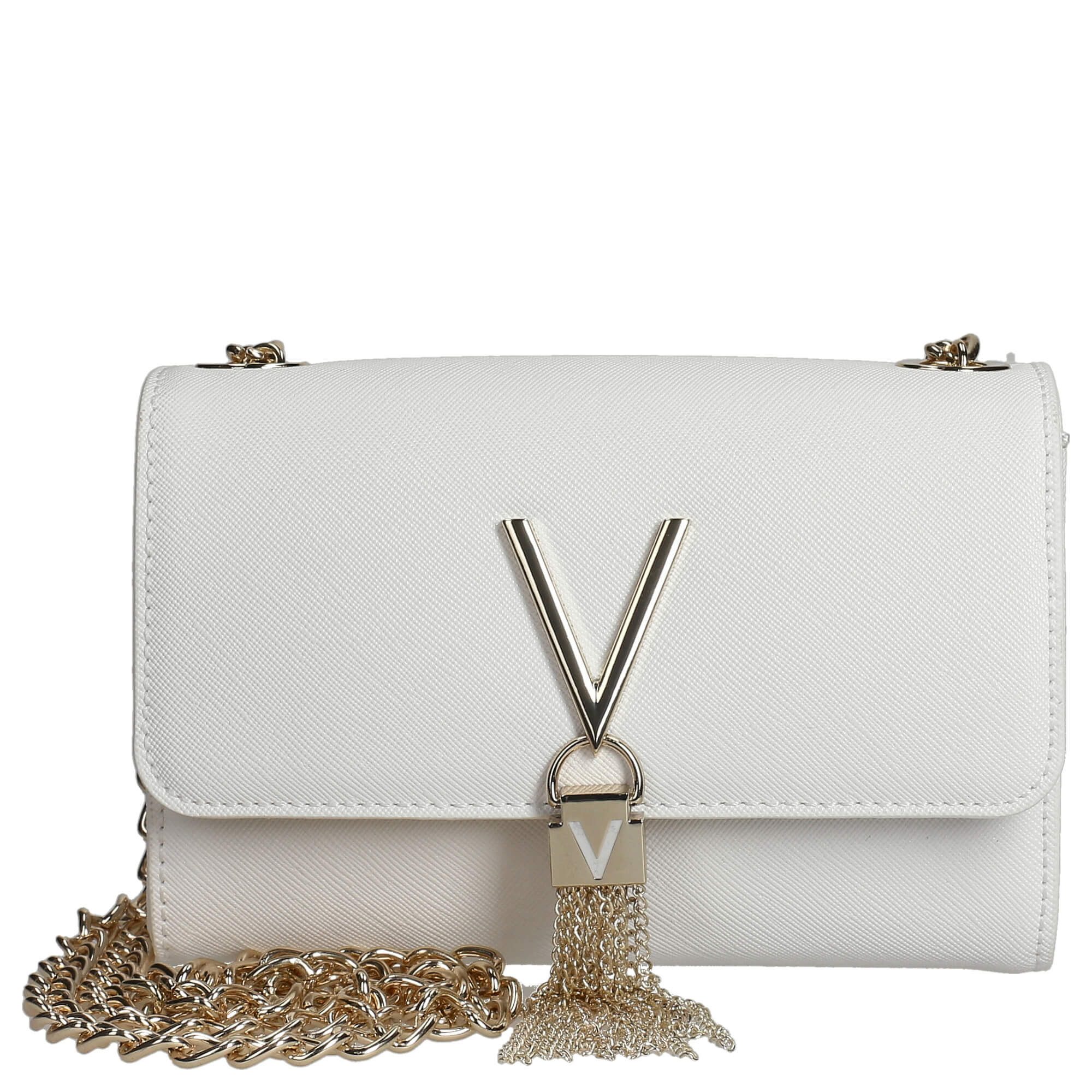 Entdecken Sie die elegante Valentino Bags Divina Sa Clutch in der zeitlosen Farbe bianco. Diese stilvolle Handtasche ist das perfekte Accessoire für jede modische Frau, die Wert auf Qualität und Design legt. Die Clutch besticht durch ihr raffiniertes Design und bietet sowohl Funktionalität als auch einen Hauch von Luxus. Sie wurde vom renommierten italienischen Label Valentino by Mario Valentino entworfen, das seit 1952 für seine kreativen und farbenfrohen Taschen bekannt ist. * Verschluss mit Überschlagklappe und praktischem Steckverschluss * Geräumiges Hauptfach, das genügend Platz für Ihre Essentials bietet * Ein Reißverschlussfach innen für sichere Aufbewahrung von Wertsachen * Ein Steckfach innen, ideal für kleinere Gegenstände * Abnehmbare Tragekette, die vielseitige Tragemöglichkeiten ermöglicht * Dekorativer Anhänger, der das Gesamtbild stilvoll abrundet Mit einem Gewicht von nur 0,30 Kilogramm ist die Clutch leicht und angenehm zu tragen. Ihr schickes Design und die hochwertige Verarbeitung machen sie zu einem Must-Have für besondere Anlässe oder den Alltag. Setzen Sie ein modisches Statement mit dieser exquisiten Clutch von Valentino!