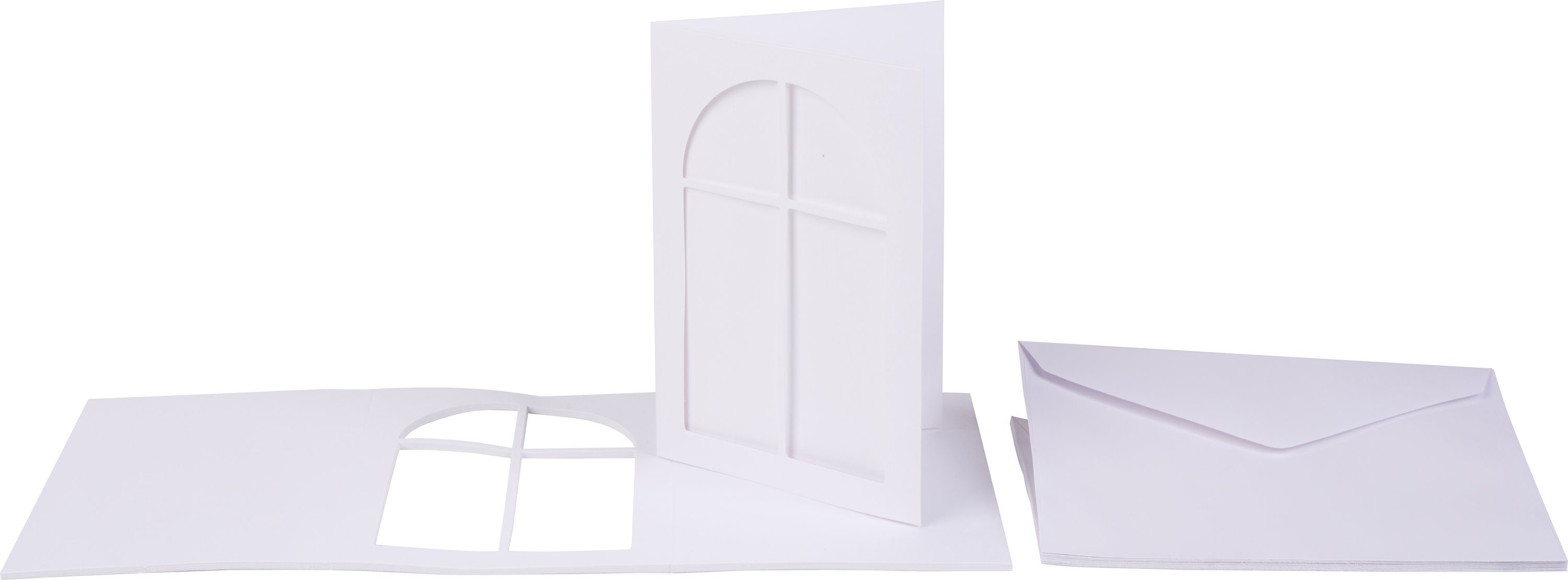 10 Passepartoutkarten einer Ausschnittform. Weißer Karton, mit Gegenblatt und passendem Umschlag.