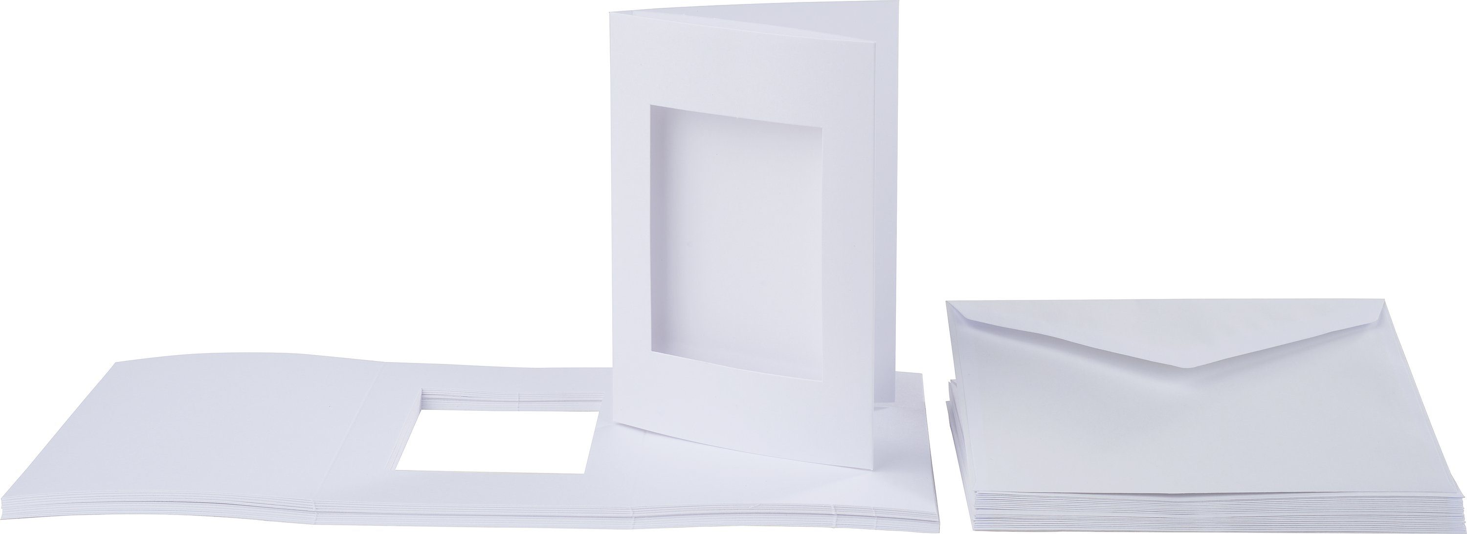 Wunderbare VBS Passepartoutkarten 'Rechteck', mit einem rechteckigen Ausschnitt von ca. 8,8 x 6,5 cm, mit Gegenblatt. Enthalten sind 20 Karten und 20 passende Umschläge. Die Karten haben das Format DIN A6 (ca. 10,5 x 15 cm) und sind jeweils mit einem Gegenblatt versehen. Eine perfekte Grundlage für die Gestaltung von Karten. Hinterlegen Sie den Ausschnitt mit Motivpapier, Fotos, Karton, Transparentpapier und vielem mehr. Stanzteile, Streuteile oder 3D-Motive sorgen für einen 3D-Effekt.