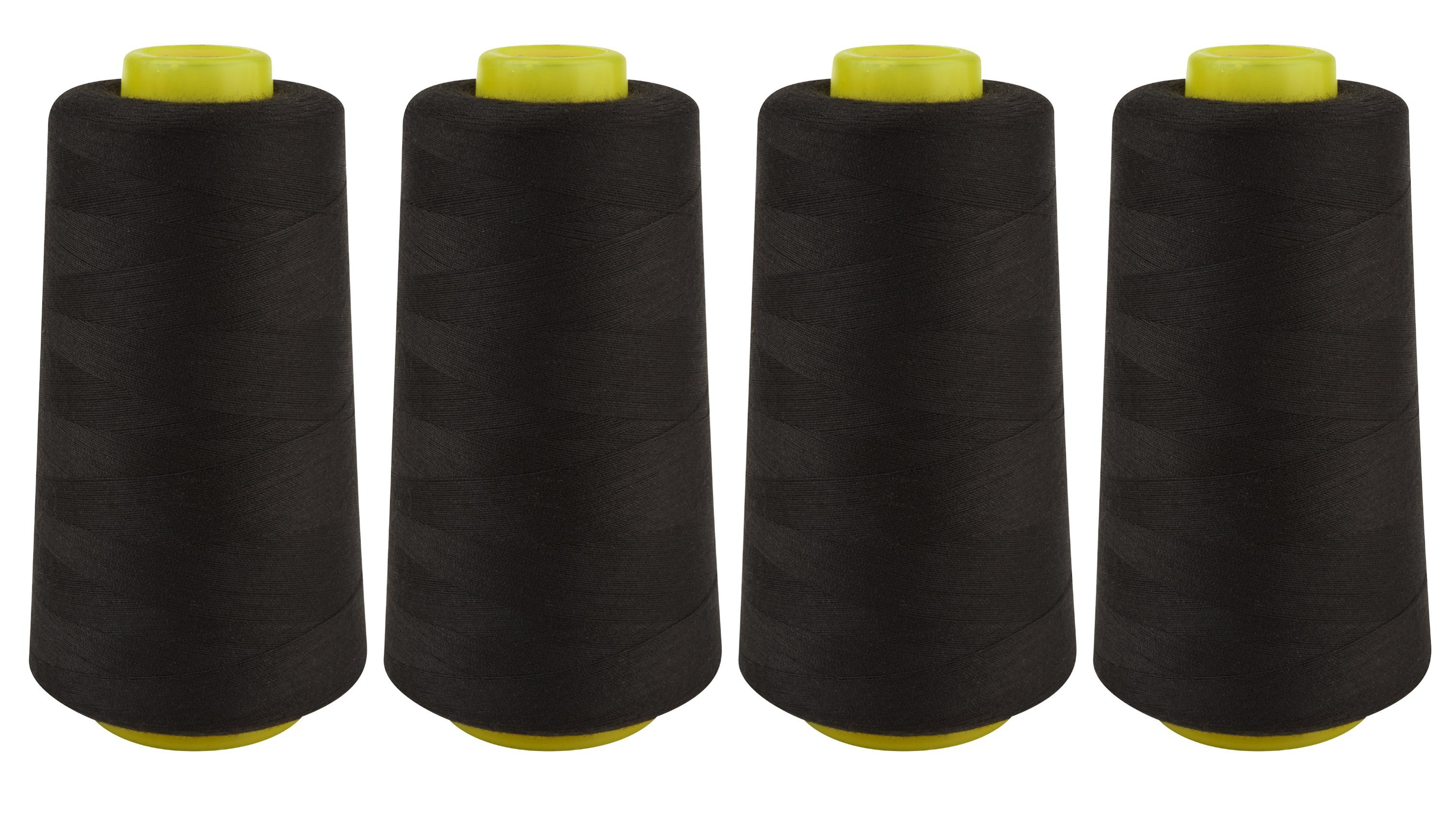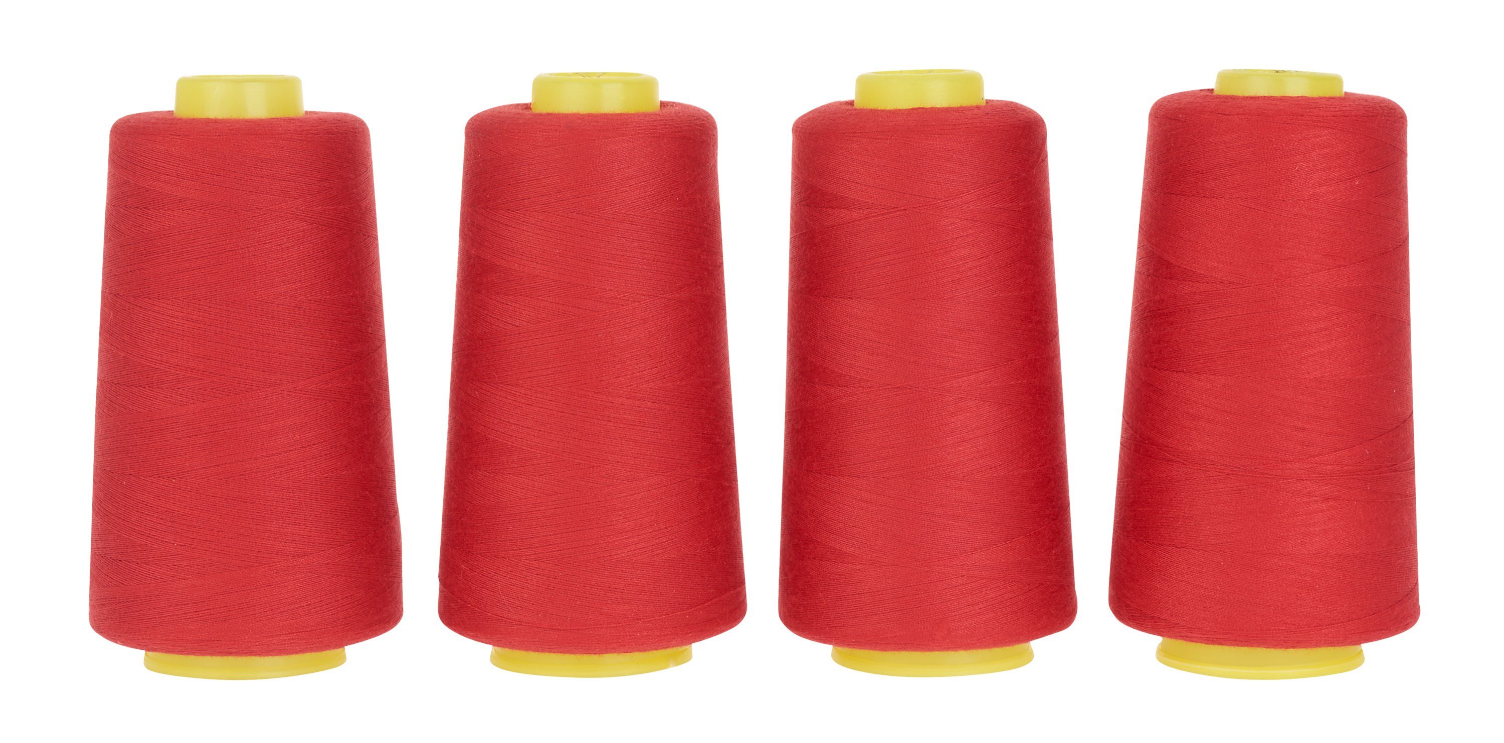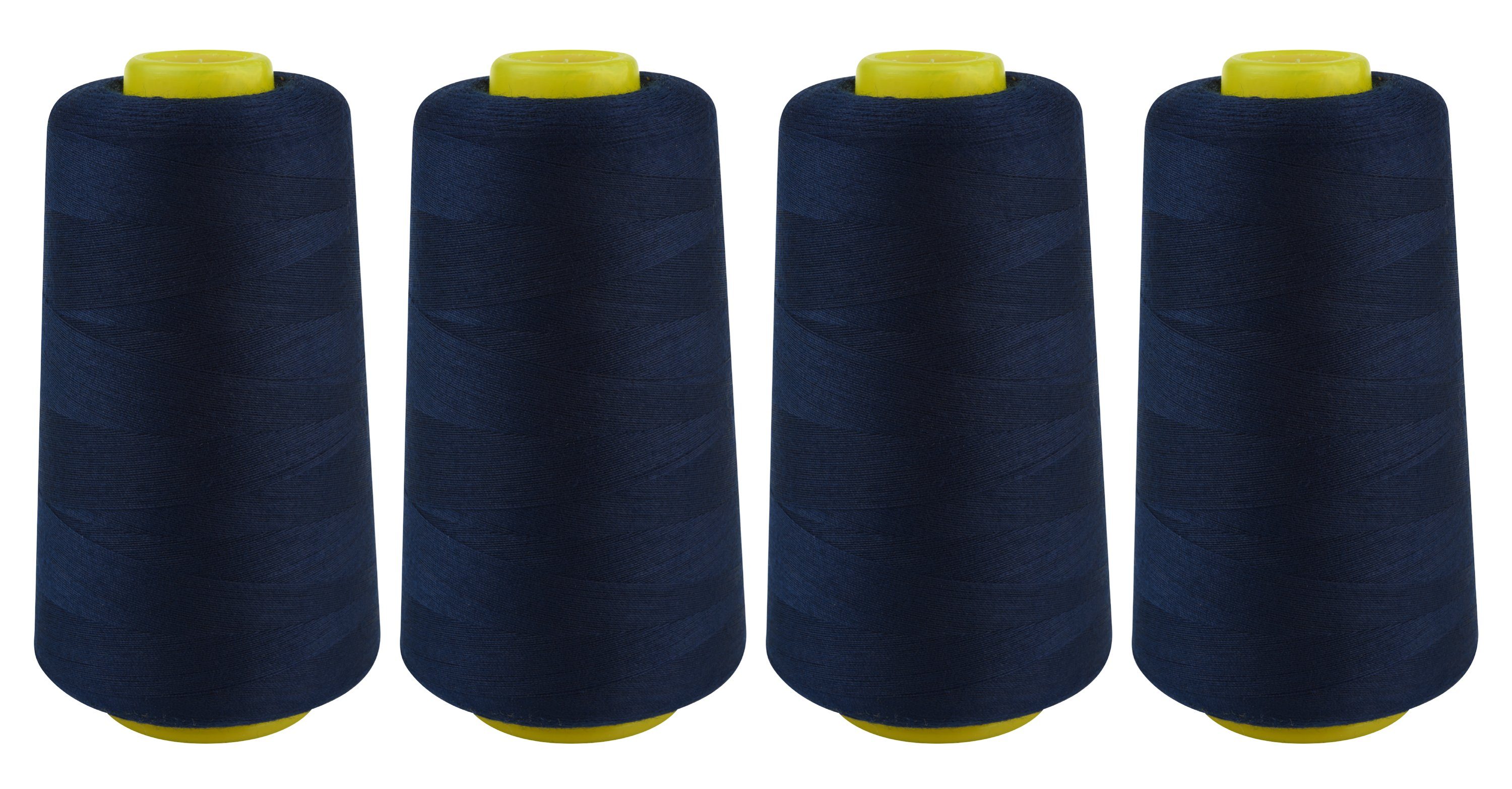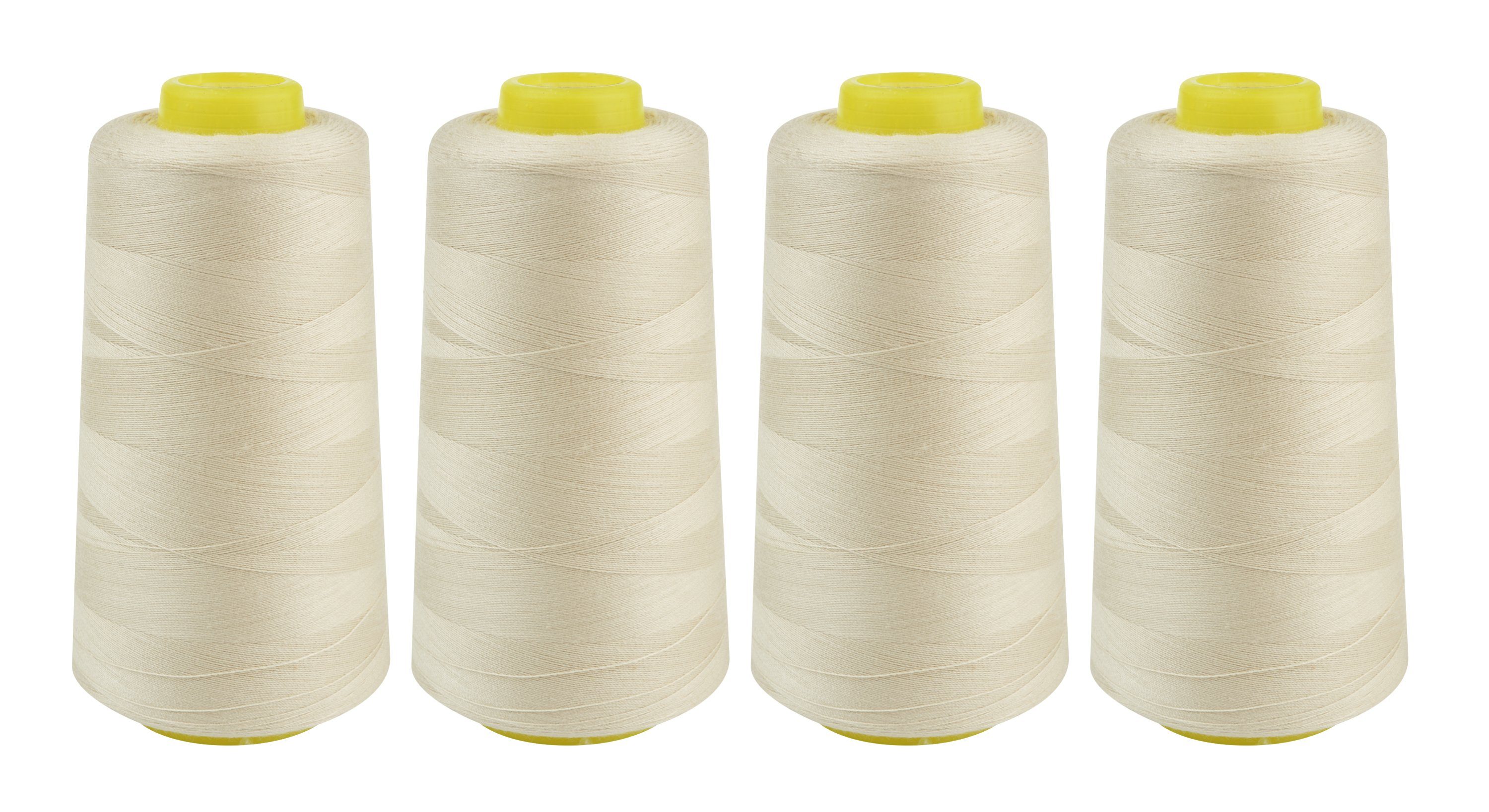 Overlocknähgarn in der Garnstärke 40s/2 (entspricht ca. der Stärke 120). Material: 100% Polyester mit einer Lauflänge von ca. 3000 Yard (ca. 2743 m) pro Kone. Enthalten sind 4 Konen der selben Farbe.