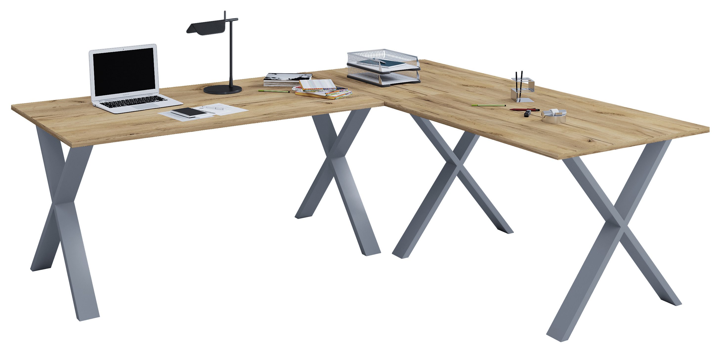 Der VCM Eckschreibtisch "Lona" in Holzstruktur-Nachbildung ist ein Schreibtisch mit besonderem Design-Anspruch. Der L-förmige Schreibtisch bietet eine geräumige Arbeitsfläche, die Ihnen viel Raum für Bewegung gibt