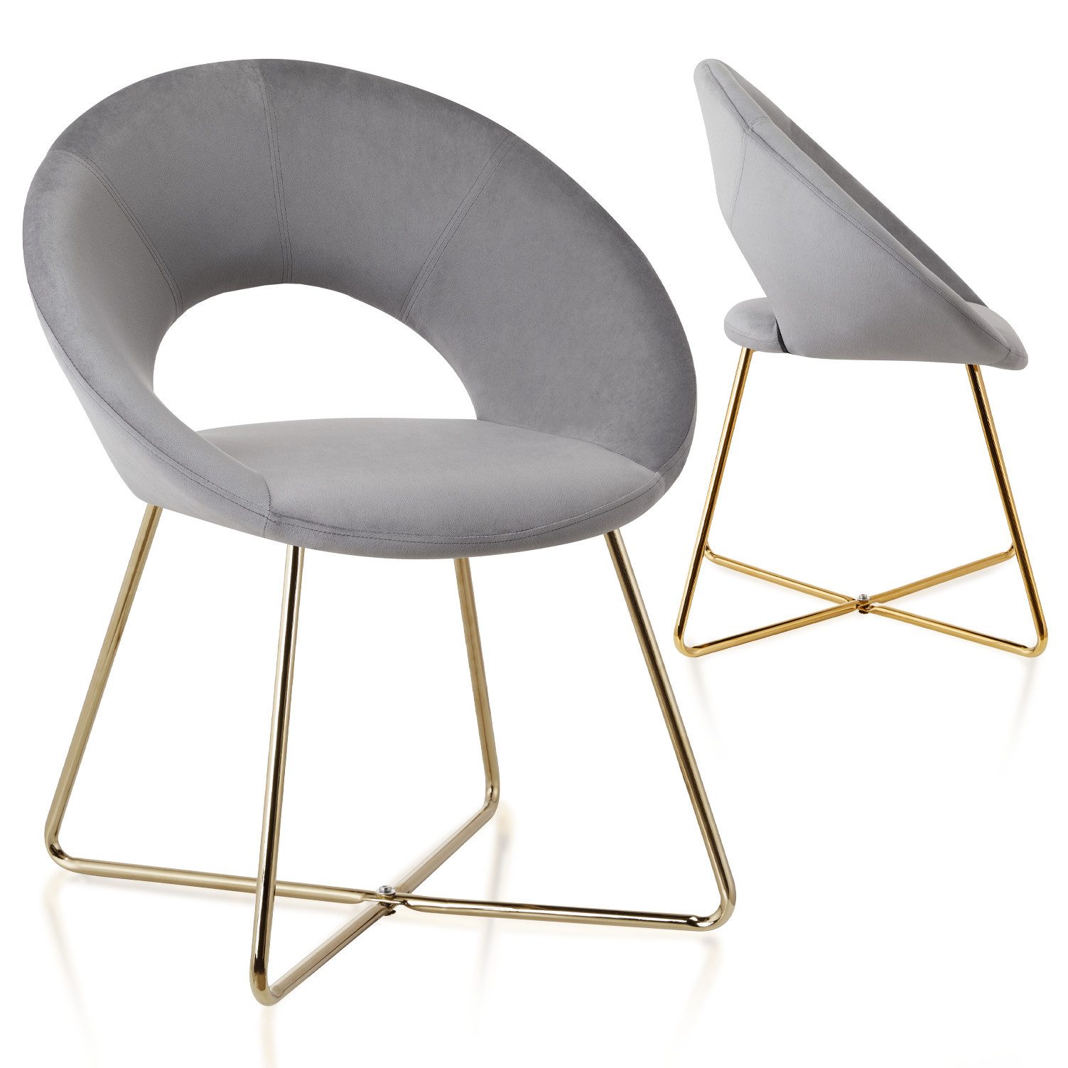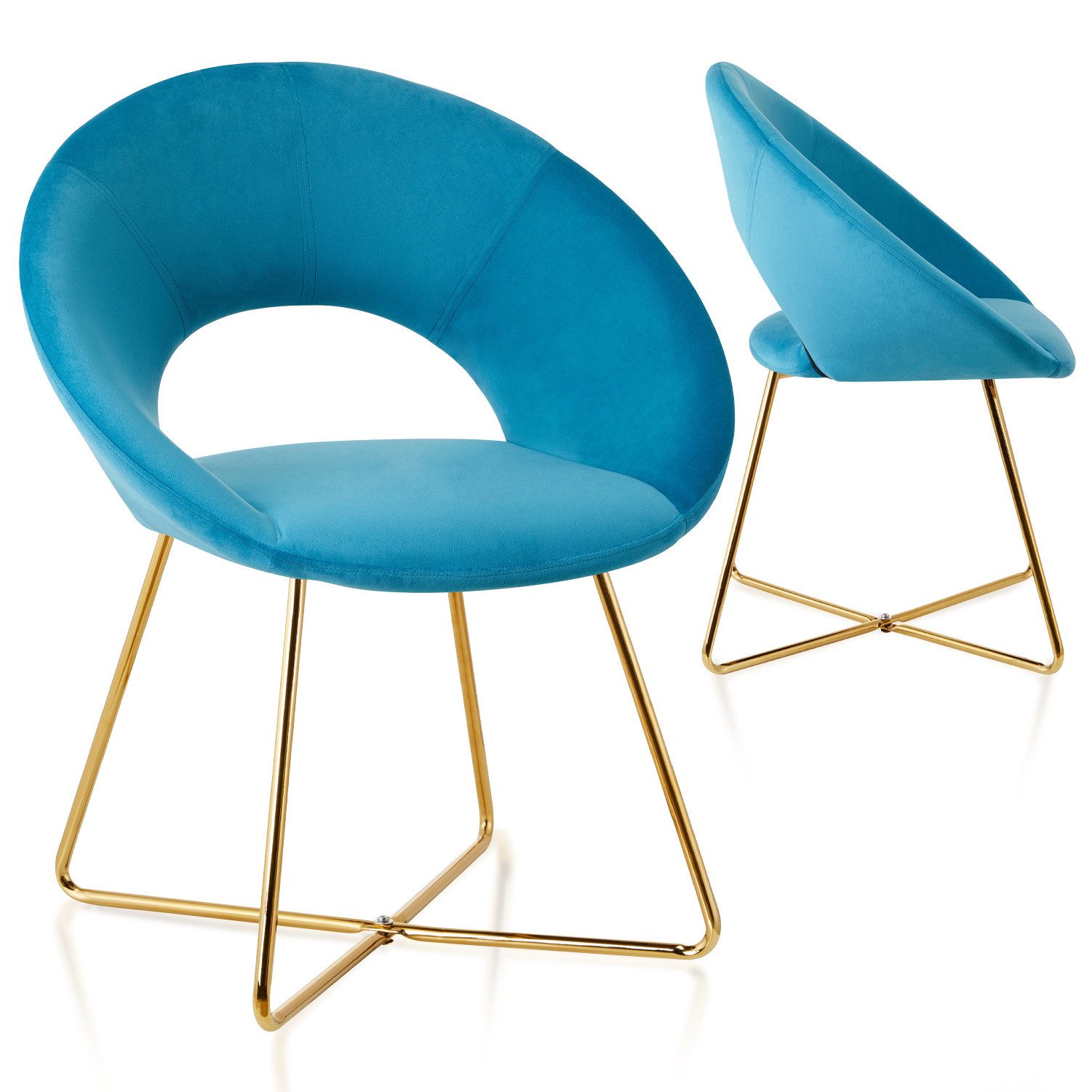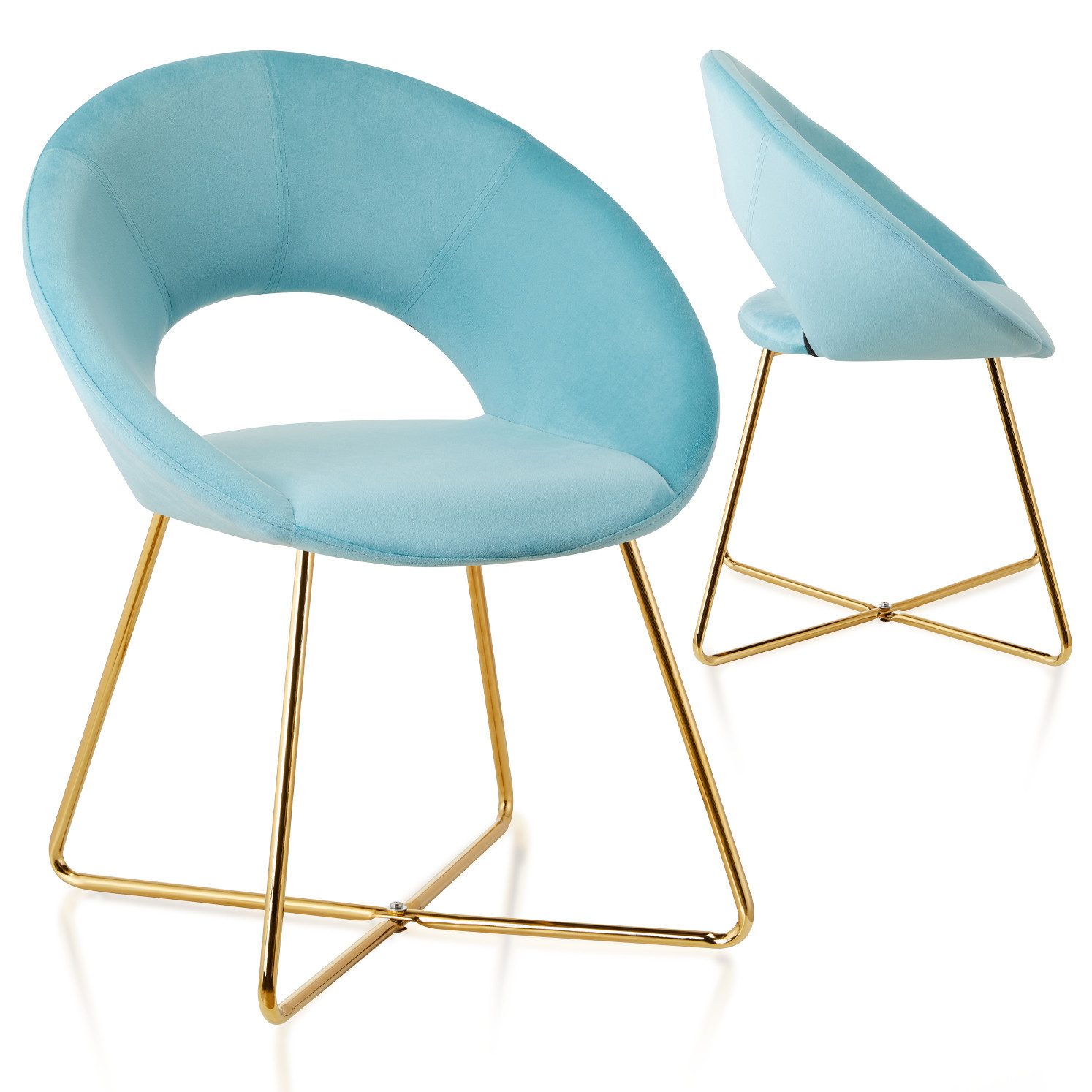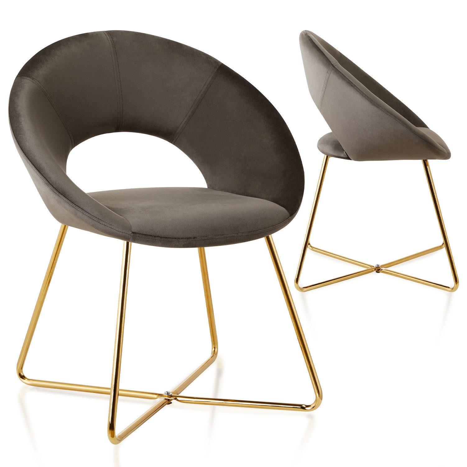 Diese Esszimmerstühle bringen Luxus und Raffinesse in Ihr Zuhause. Perfektion der Form, Lebendigkeit und die Energie, die es ausstrahlt, werden Sie in Ihr Wohnzimmer, Esszimmer, Schlafzimmer bringen wollen. Die abgerundete, mit weichem Samt bezogene Rückenlehne geht nahtlos in die Armlehne und das Sitzkissen über und verleiht diesem Stuhl ein einzigartiges Aussehen und perfekten Gebrauchskomfort. Ein massiver Metallrahmen in elegantem Gold sorgt für Stabilität und Langlebigkeit, während nicht abfärbende Fußstifte für leise Bewegungen sorgen, ohne den Boden zu zerkratzen.