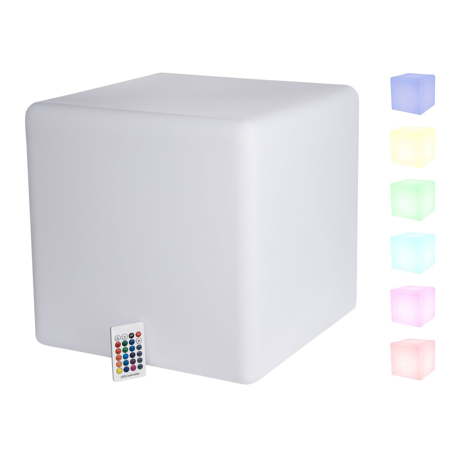 Der LED Würfel ist in verschiedenen Größen (20/30/40/50 cm) erhältlich. Er wird mit einer Fernbedienung inklusive Batterie geliefert und ist in einer eleganten matt-weißen Farbe erhältlich.
