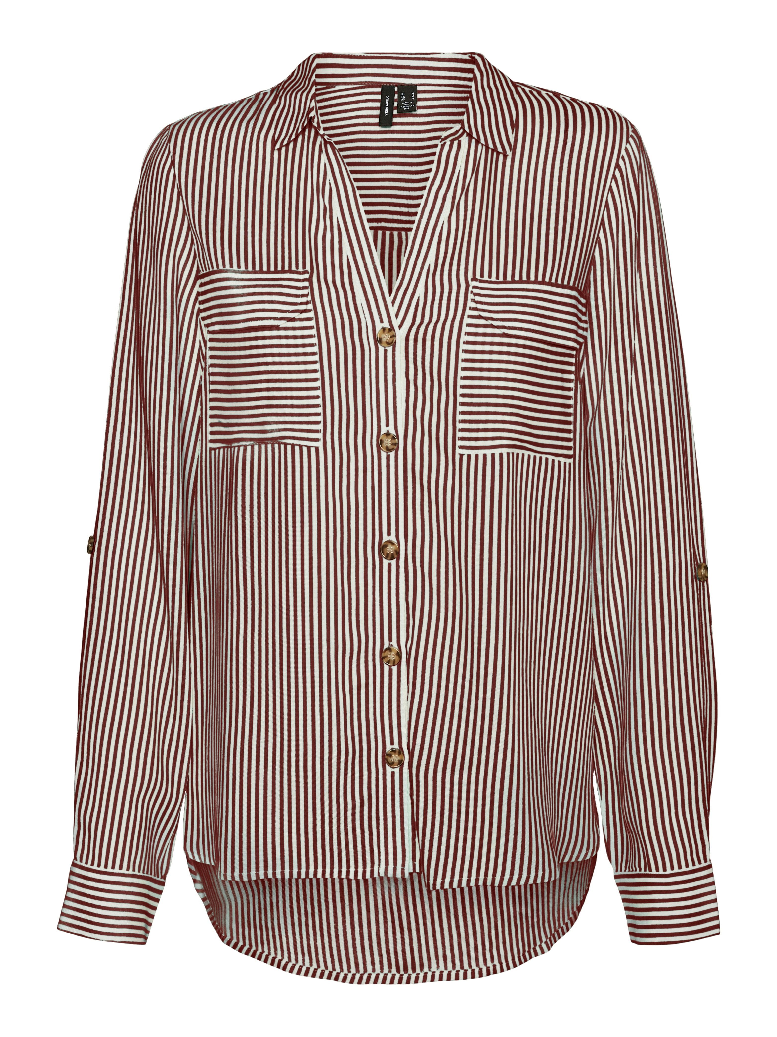 Schau dir die Hemdbluse von Vero Moda mal genauer an. Die langen Ärmel enden in einer Manschette. Diese Bluse hat einen V-Ausschnitt und ist Po-bedeckend sowie basic geschnitten und umspielt deinen Oberkörper locker.
