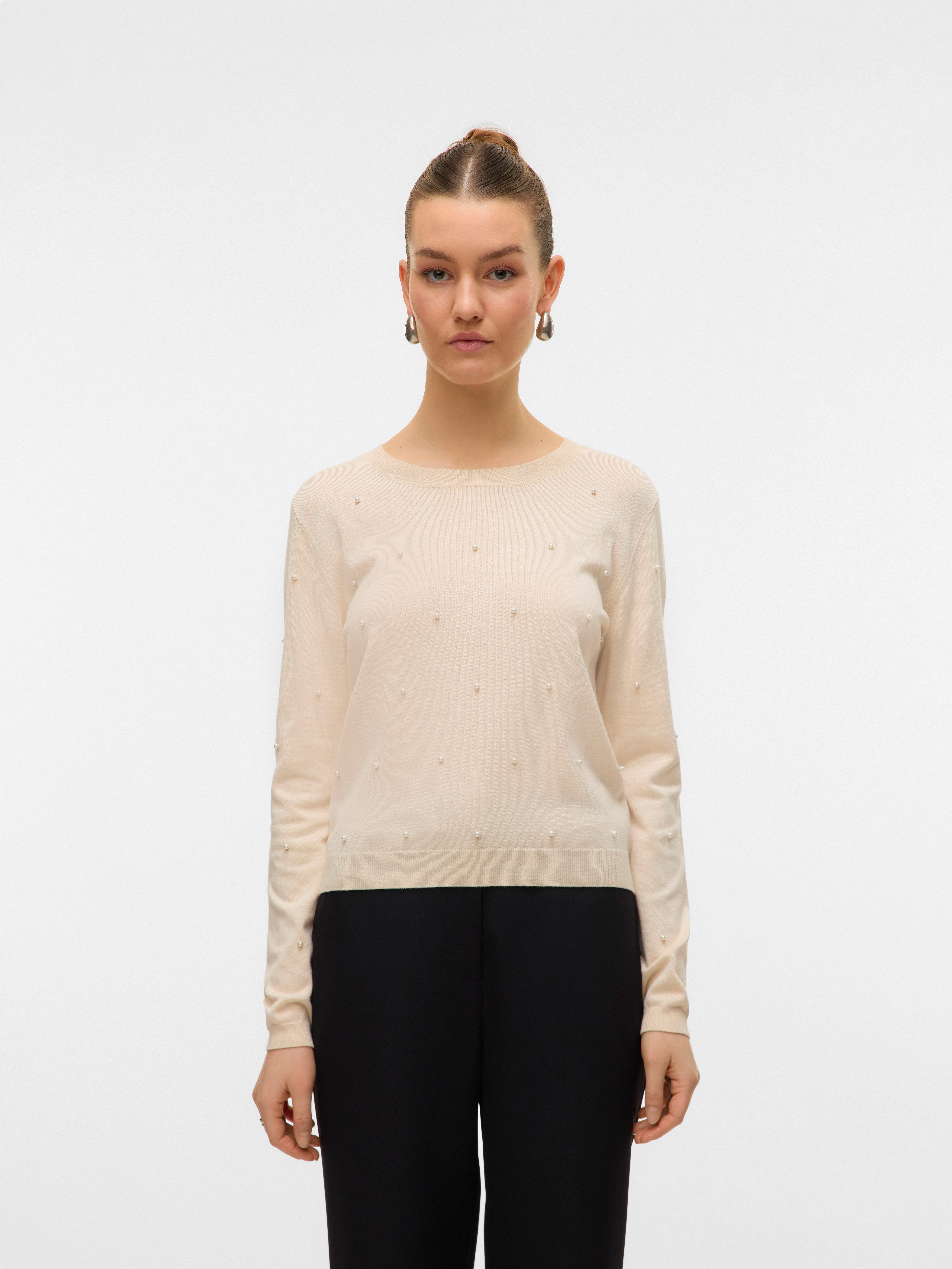 Schau dir den Rundhalspullover von Vero Moda mal genauer an. Er wirkt mit den Zierperlen elegant glänzend. Die langen Ärmel enden in einem Rippstrickbündchen, das für guten Sitz sorgt. Dieser Pullover ist basic geschnitten und umspielt deinen Oberkörper locker.