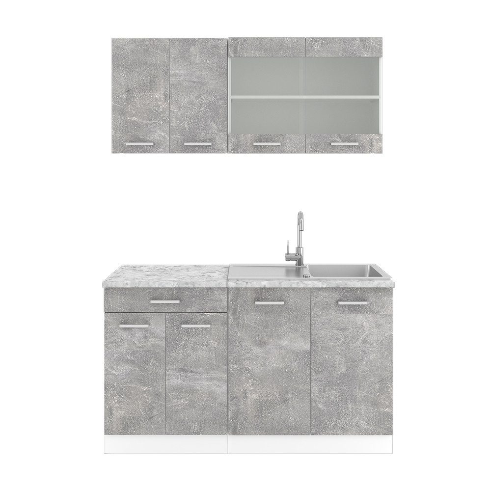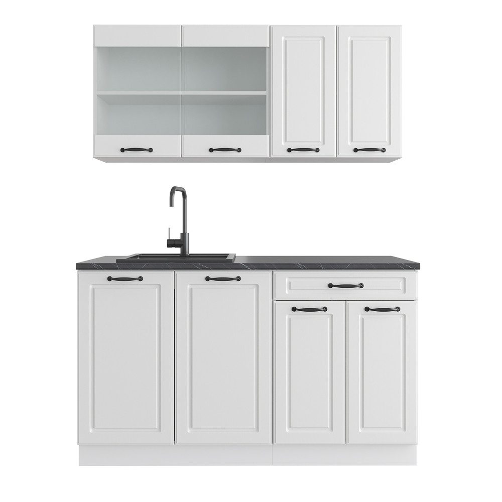 LIEFERUMFANG: Küchenblock ohne Arbeitsplatte, Montagematerial, Montageanleitung (Sofern nicht anders angegeben, gehören Elektrogeräte und Dekorationen nicht zum Lieferumfang)#21249