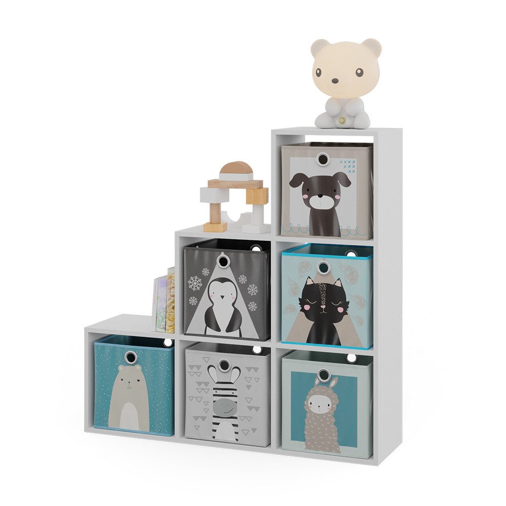 LIEFERUMFANG: Treppenregal, 6x Faltbox , Montageanleitung, Montagematerial#1388