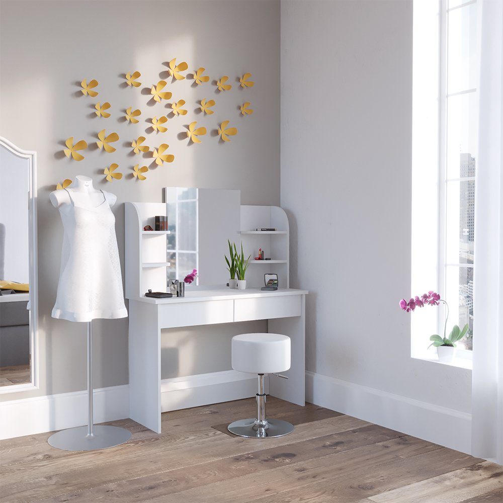 LIEFERUMFANG: Schminktisch mit Spiegel, Hocker, Montageanleitung, Montagematerial#509