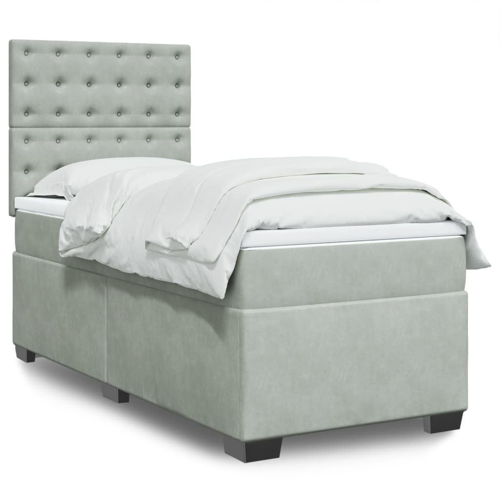 Mit diesem Boxspringbett genießt du eine erholsame Nachtruhe! Es sorgt für maximale Entspannung und einen angenehmen Schlaf. Weiches und komfortables Material: Der Samtstoff hat eine weiche und sanfte Oberfläche, die sich angenehm auf der Haut anfühlt und höchsten Komfort bietet.Taschenfederkernmatratze: Diese Matratze hat einzelne Taschenfedern, die unabhängig voneinander arbeiten. Somit bietet sie dir optimalen Halt, indem sie auf Druckstellen in jedem Bereich unabhängig reagieren. Diese Konstruktion verhindert das "Zusammenrollen" und reduziert die Bewegungsübertragung im Vergleich zu alten Federkernmatratzen. Jede Taschenfeder stützt die Körper-Druckstellen individuell.LED-Beleuchtung für ein angenehmes Ambiente: Dieses Bett verfügt über LED-Leuchten, die einfach eingestellt werden können, um eine persönliche Lichtshow zu kreieren. Du kannst die Modi, Farben und Helligkeit anpassen, um das Ambiente deines Innenraums zu verbessern.Höhenverstellbares Kopfteil: Das Kopfteil ist nach Wunsch höhenverstellbar.Komfortable Matratzenauflage: Die Auflage verbessert den Halt und den Komfort mit ihrer weichen, atmungsaktiven Oberfläche und verlängert gleichzeitig die Lebensdauer deiner Matratze. Der abnehmbare Bezug ermöglicht ein einfaches Waschen, was die Pflege der Matratze zum Kinderspiel macht.Gut zu wissen:Das Produkt verfügt über einen USB-Anschluss, für den eine zertifizierte 5V-USB-Stromquelle erforderlich ist (nicht im Lieferumfang enthalten).Aus hygienischen Gründen kann die Matratze nicht zurückgegeben werden, wenn die Verpackung entfernt oder geöffnet wurde.Nur der Teil mit dem Symbol kann geschnitten werden und nur der Teil mit dem USB funktioniert auch weiterhin.