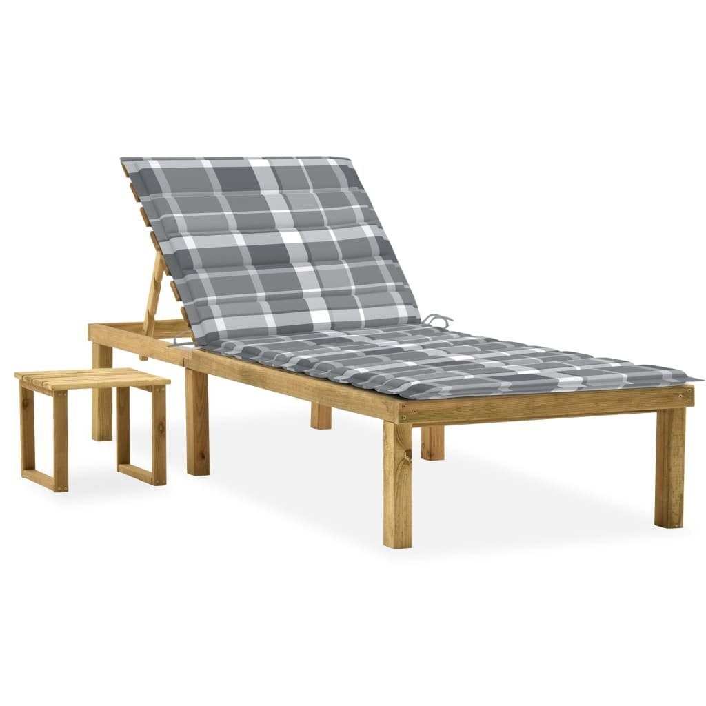 Aus imprägniertem Kiefernholz gefertigt, ist die Sonnenliege witterungsbeständig und langlebig. Zudem lässt sie sich mit einem feuchten Tuch ganz einfach reinigen. Die Rückenlehne ist verstellbar, damit Sie die bequemste Position finden. Auf dem Tisch können Sie auch Ihr Telefon, Ihre Sonnenbrille, Getränke und andere kleine Gegenstände in Reichweite aufbewahren. Darüber hinaus ist die mitgelieferte Auflage viel mehr als eine praktische Ergänzung, sie erfüllt auch eine dekorative Funktion.