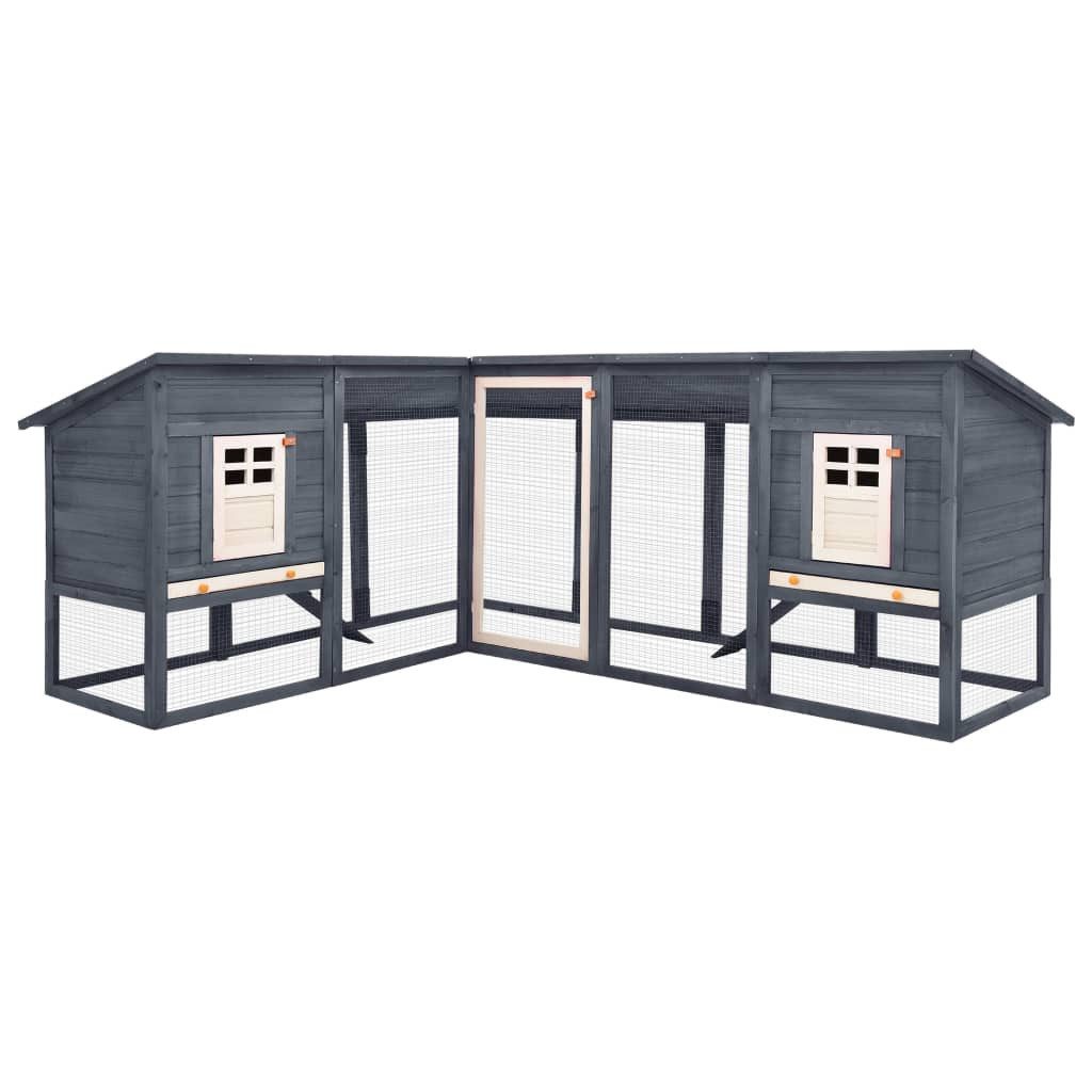Dieser Holz-Kaninchenstall bietet einen großen, gemütlichen Platz für die Haltung kleinerer Tiere, insbesondere Ihrer niedlichen Kaninchen. In diesem Kaninchenstall können Kleintiere spielen, sich frei bewegen oder sich einfach nur geborgen und sicher fühlen. Der Kaninchenkäfig hat ein umfassendes Design mit zwei Häusern und einem sehr großen Auslauf mit verzinktem Stahldrahtgitter, um Ihre Haustiere im Auge zu behalten und auch unerwartete Unfälle zu verhindern. Es ermöglicht die Überwachung der Kaninchen und bietet ihnen genügend frische Luft. Das Tierhaus besteht aus massivem Tannenholz und ist daher stabil und langlebig. Das Kippdach besteht aus wasserabweisendem Stoff und hält Regen fern. Die Häuschen bieten den perfekten Schlafbereich. Zusätzlich führt die rutschfeste Rampe vom Untergeschoss zum Obergeschoss. Dieses Gehege für Kleintiere ist eine ausgezeichnete Wahl für Ihre Haustiere auf dem Hof.