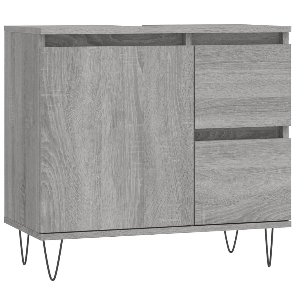 Der Badezimmerschrank verfügt über 1 Fach mit Tür und 2 Schubladen, die verschiedene Aufbewahrungsmöglichkeiten und zusätzlichen Stauraum in deinem Bad bieten.Flexibler Türmontage: Du kannst die Tür und die Schubladen je nach Bedarf auf der linken oder rechten Seite montieren.Füße aus Eisen: Die Eisenfüße verleihen deiner Einrichtung einen industriellen Stil und sorgen gleichzeitig für die Stabilität des Badschranks.