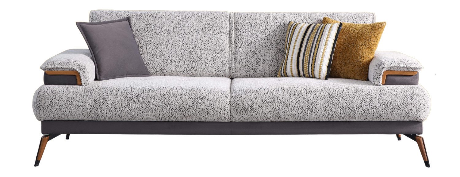Das Carmen Sofa besticht durch seinen Bouclé-Stoff mit Melierung in Grau, der dem Möbelstück eine lebendige und gleichzeitig elegante Optik verleiht. Die robusten Metallfüße in Naturfarben sorgen für Stabilität und einen dezenten Kontrast zum strukturierten Stoff.