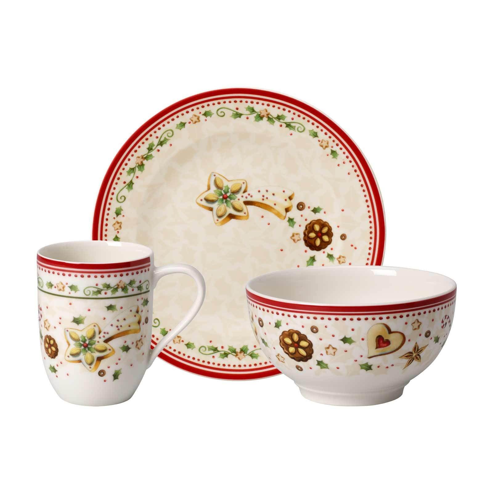 Artikeldetails: Material: Premium Porzellan Merkmal: Spülmaschinenfest, Mikrowellensicher Lieferumfang: 1x Frühstücksteller, 1x Becher mit Henkel, 1x Bol