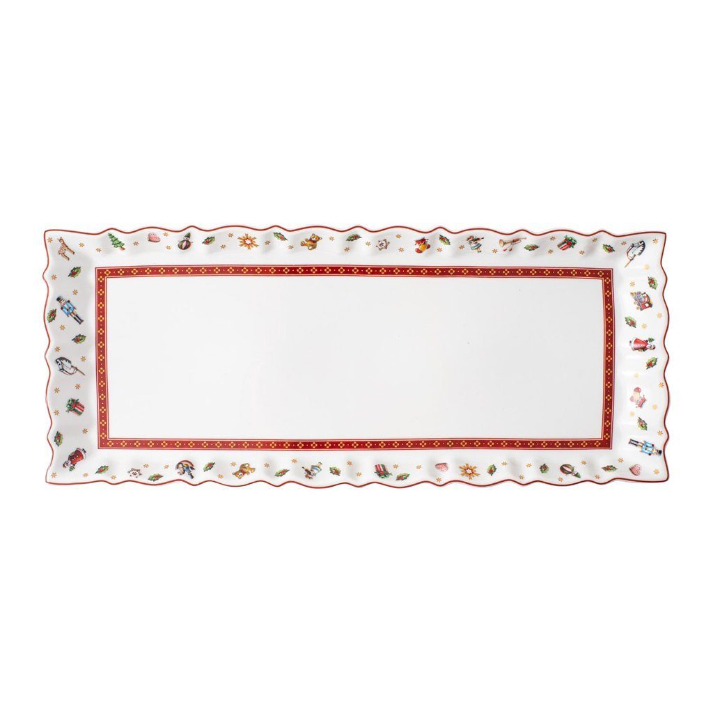 Die Kollektion Toy’s Delight von Villeroy & Boch weckt mit ihren verspielten Motiven in Rot, Grün und Weiß Kindheitserinnerungen und versprüht nostalgischen Charme. Das europäische Traditionsunternehmen Villeroy & Boch steht seit 1748 für Porzellan höchster Qualität. Servieren Sie Ihren leckersten Weihnachtskuchen oder eine bunte Auswahl Ihrer Lieblingsplätzchen auf dieser schönen, großen Kuchenplatte. Bringen Sie festliche Weihnachtsstimmung auf den Tisch mit Villeroy & Boch. Am besten per Hand reinigen. Mikrowellensicher. Wird in Geschenkverpackung geliefert.