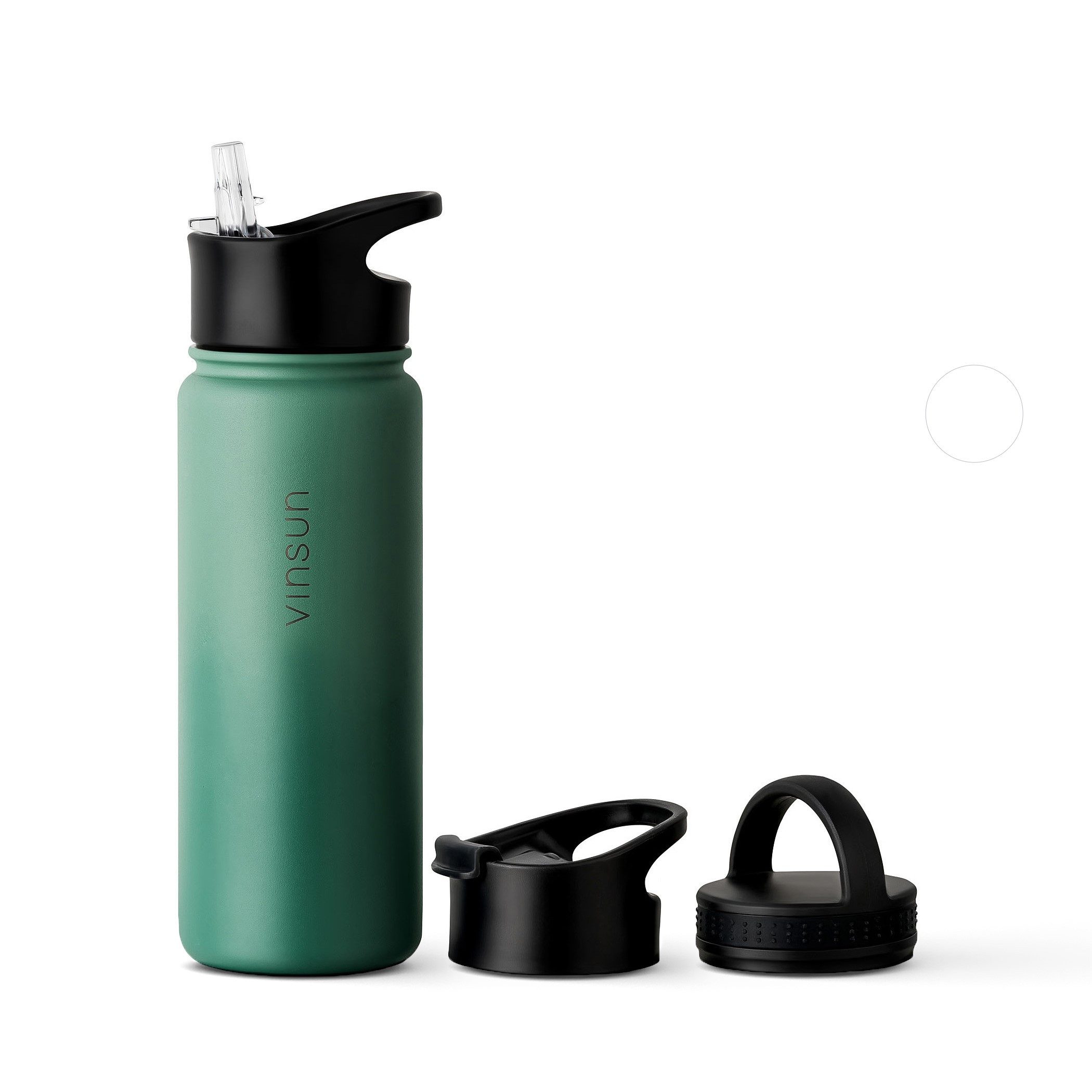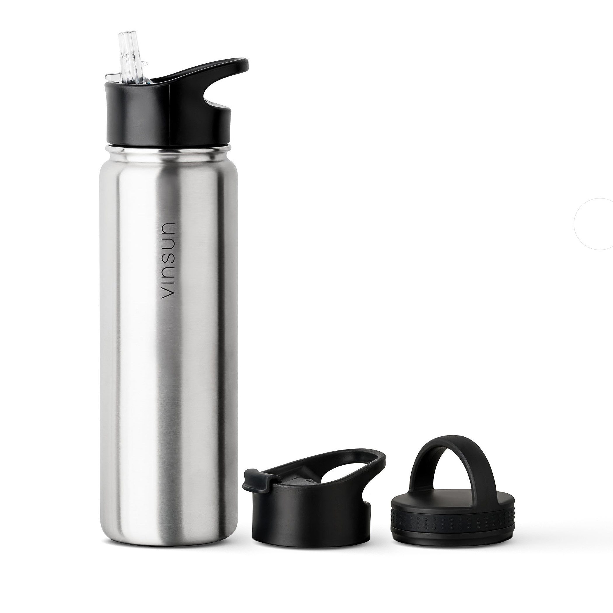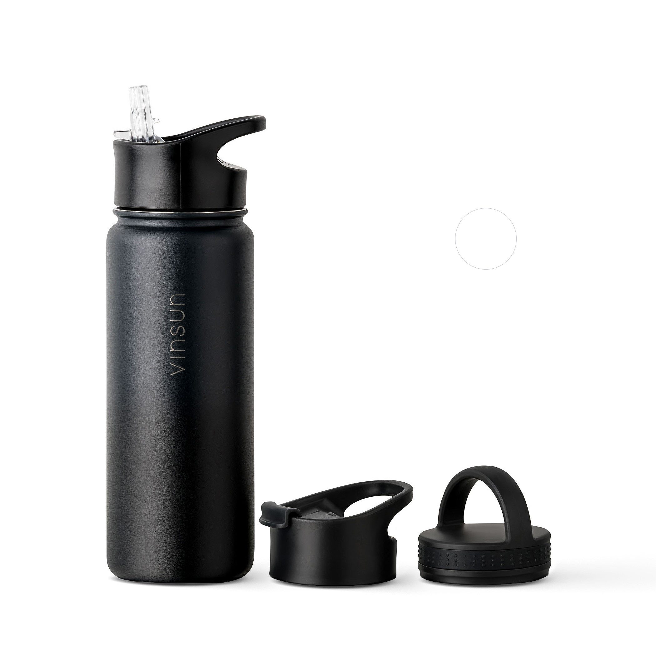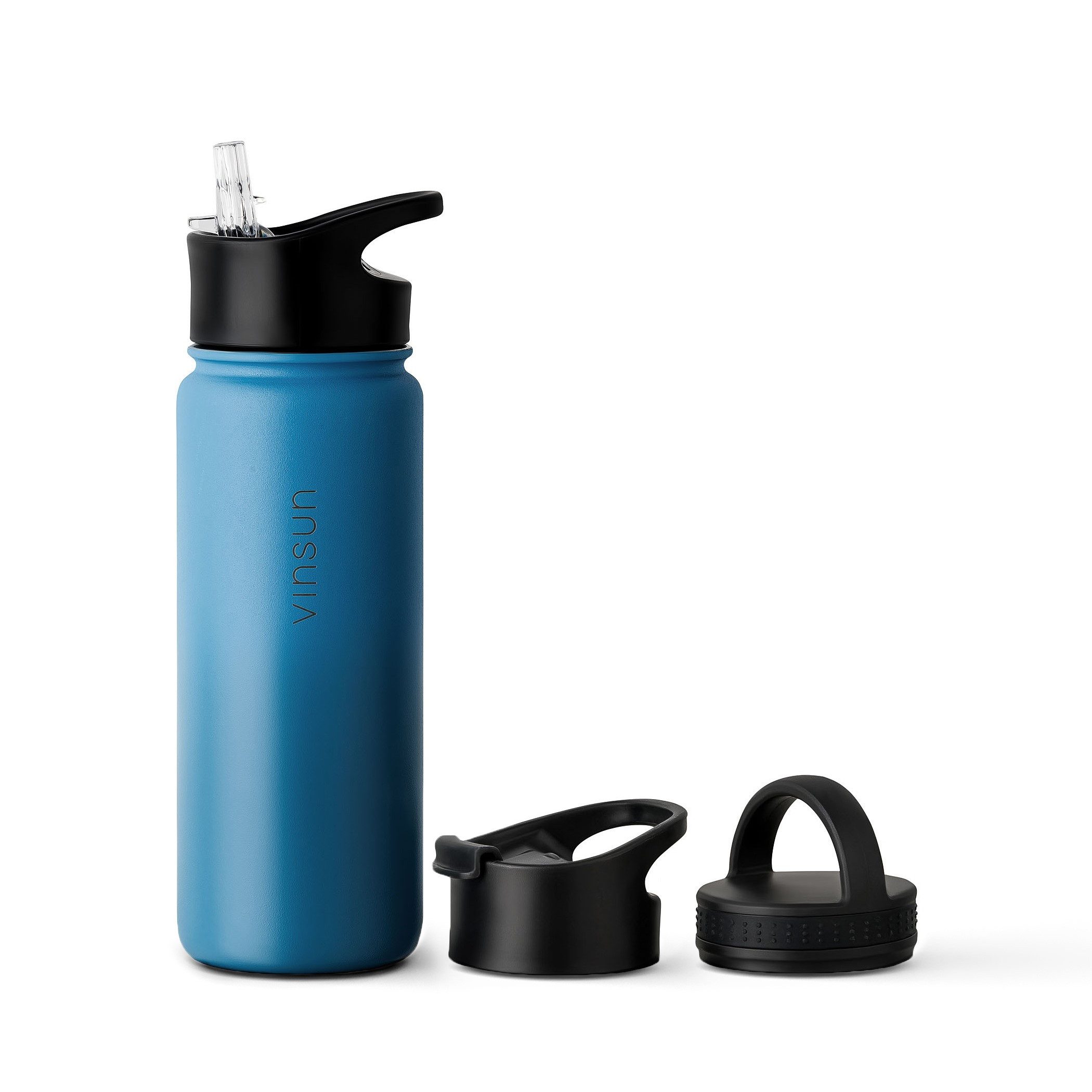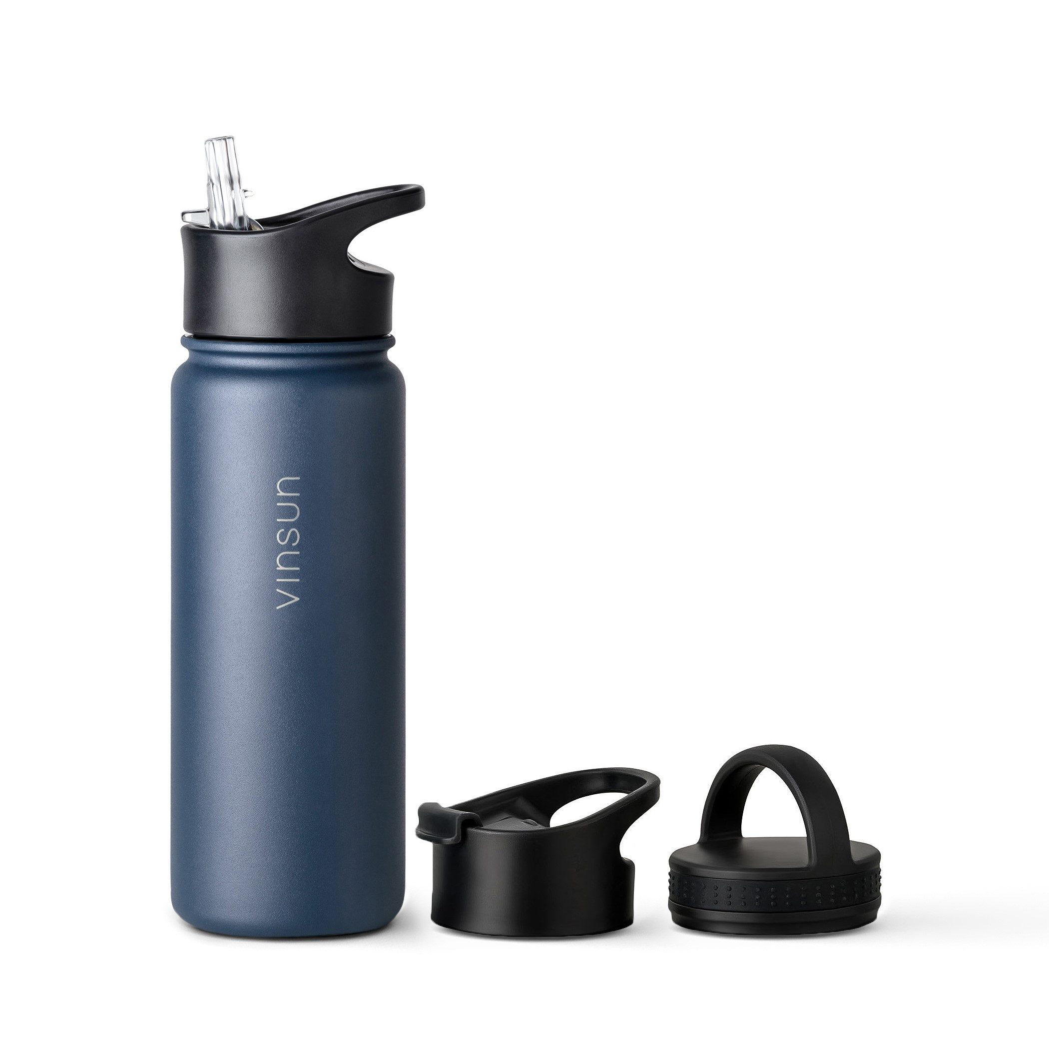 Lieferumfang | 1x Vinsun Trinkflasche 500ml, 1x Deckel mit Strohhalm, 1x Deckel mit Trinköffnung, 1x Klassischer Schraubverschluss Deckel |