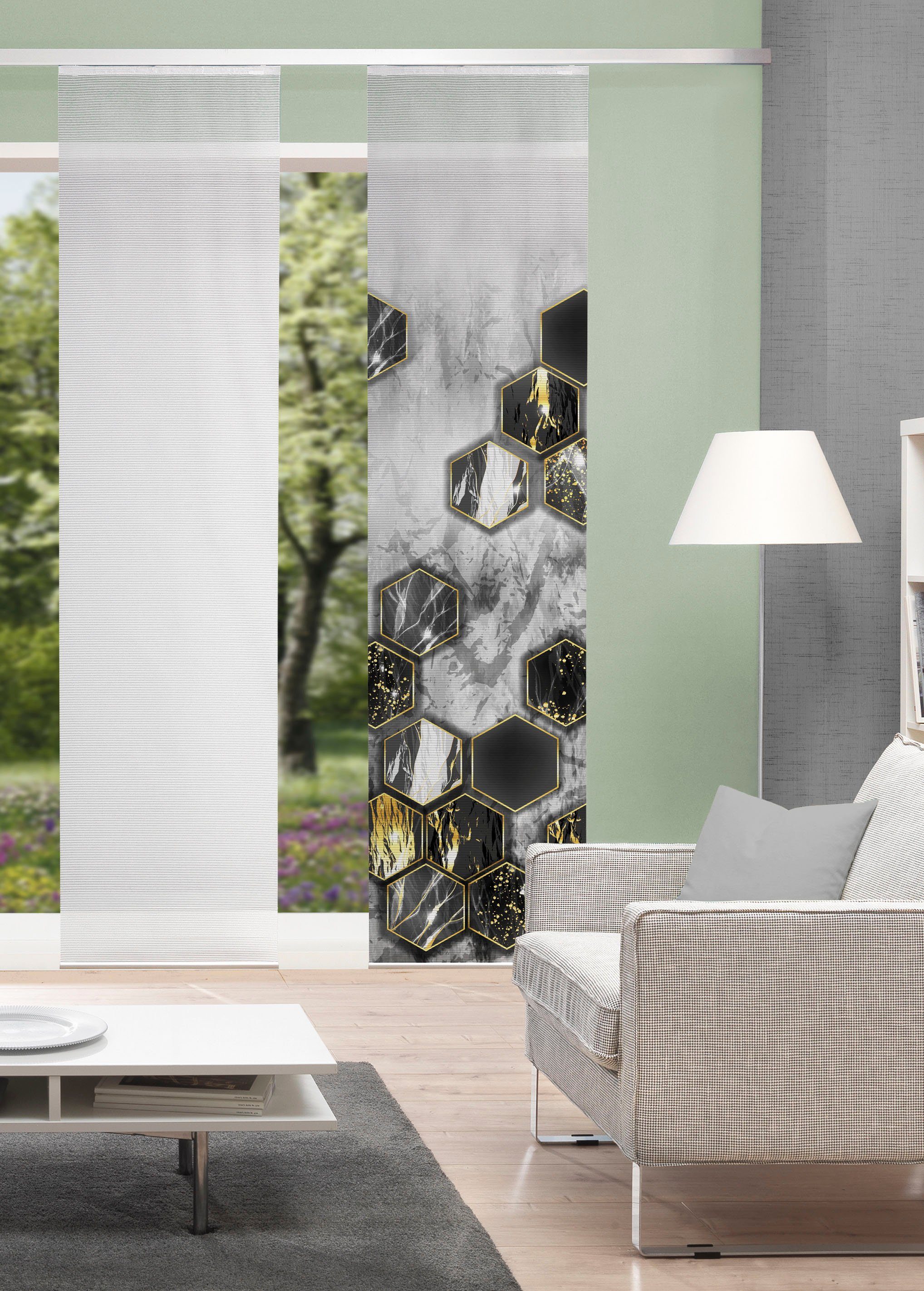 | Hinweis Dekoration | Die angegebenen Maße sind die fertig dekorierten Maße. Eine Schiebegardine ist eine schmale, glatt hängende Stoffbahn, die sich sowohl als Sichtschutz als auch zur Raumteilung eignet. Durch die Schiebetechnik sind Schiebegardinen sehr flexibel einsetzbar. |