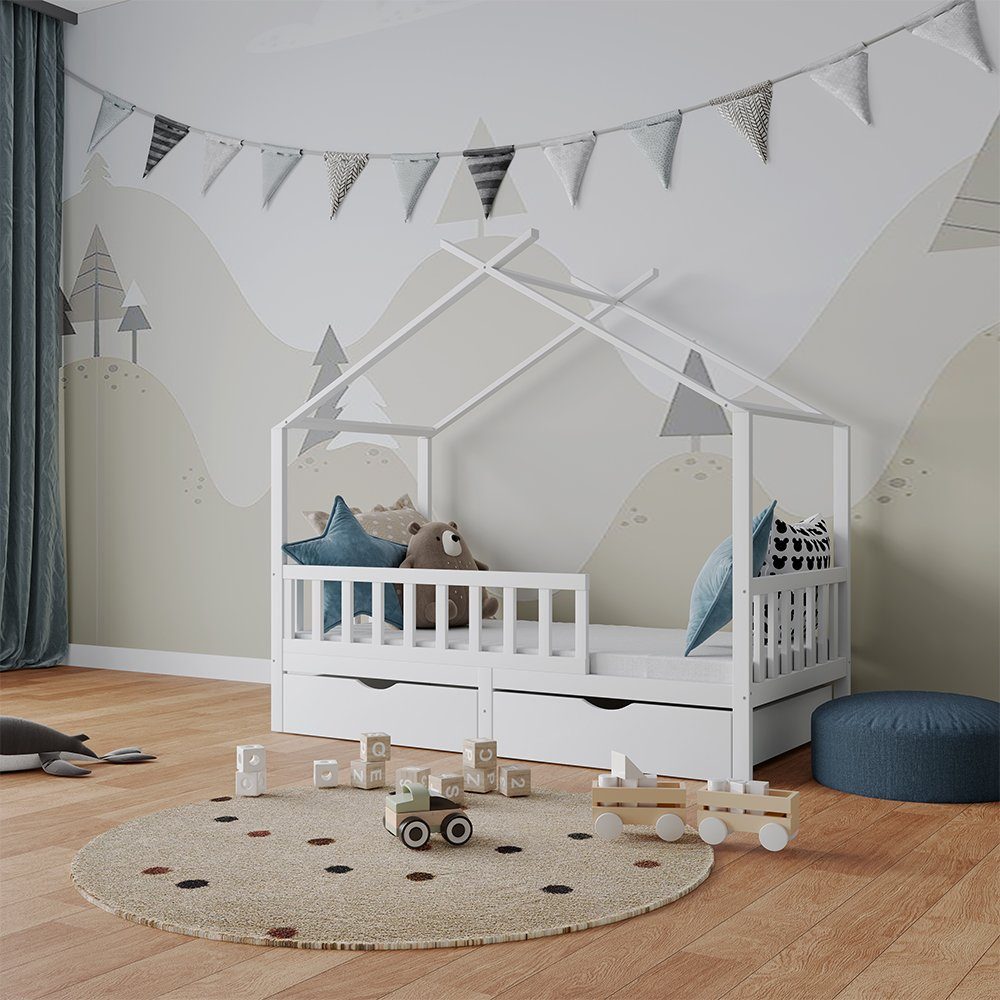 LIEFERUMFANG: Hausbett, Montageanleitung, Montagematerial, 2 x Schubladen, Matratze.#14749