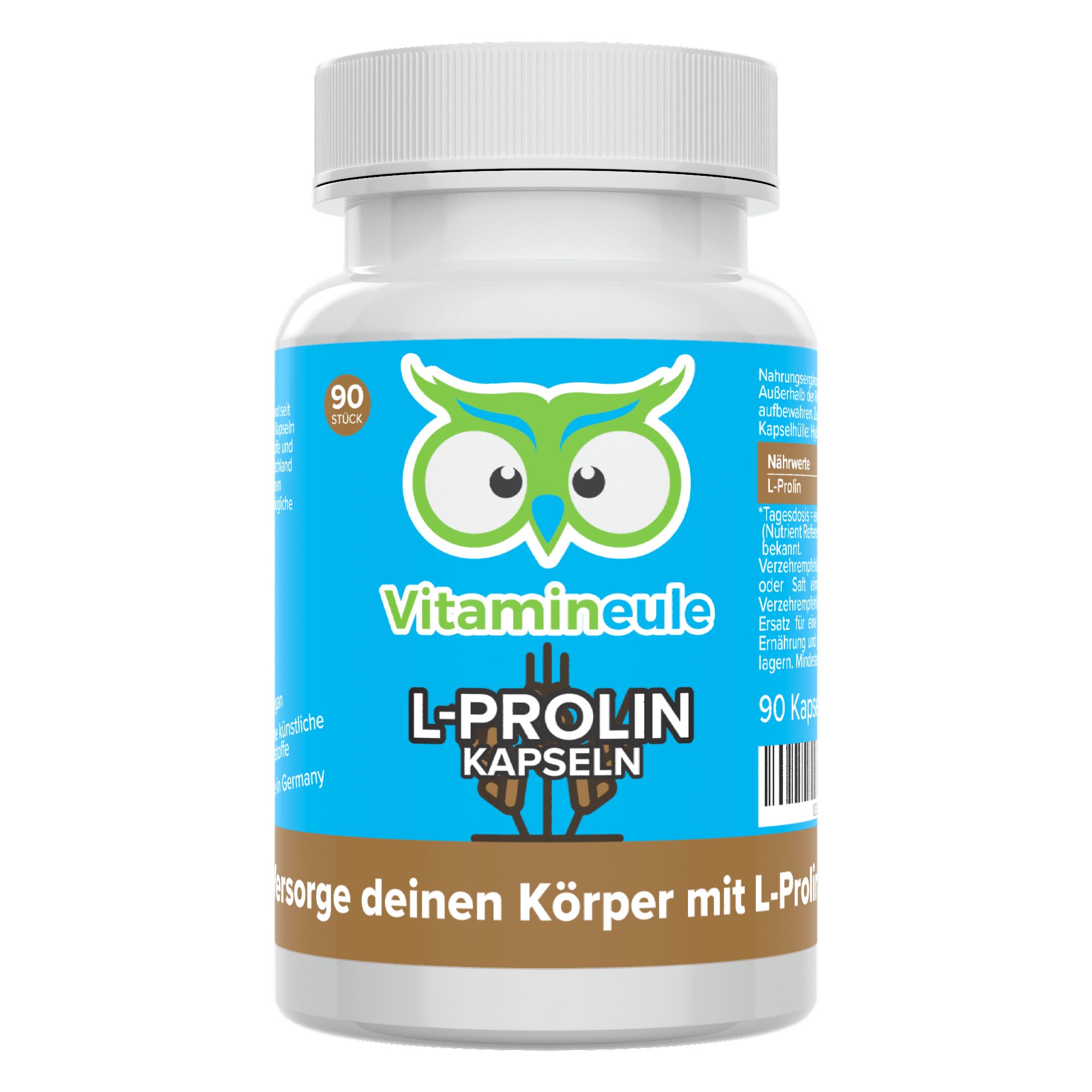Unsere Vitamineule® L-Prolin Kapseln werden in Deutschland hergestellt und sind frei von künstlichen Zusatzstoffen. Jede Kapsel enthält 500 mg reines L-Prolin und ist 100% vegan. Dank der natürlichen Inhaltsstoffe eignen sich die Kapseln auch für Всіrgiker. Jede Charge wird einzeln von einem unabhängigen Labor geprüft, um höchste Produktqualität zu gewährleisten.